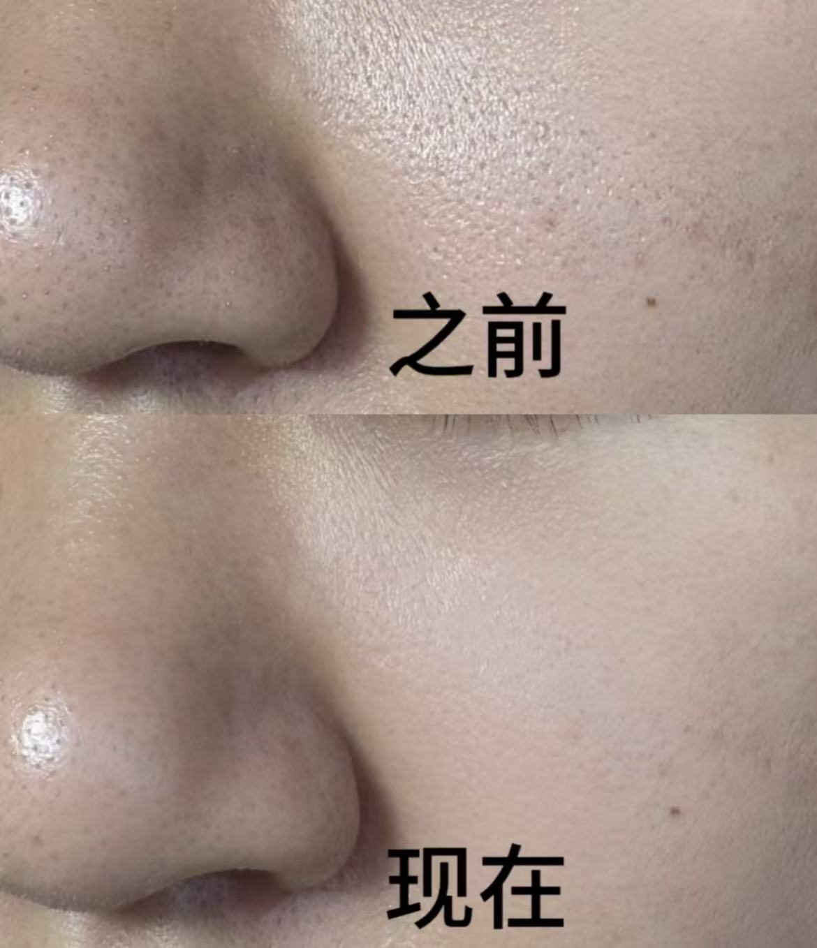 收缩毛孔效果:通过皮肤影像仪观察,使用28天后,受试者鼻翼两侧毛孔面积平均缩小18%,毛孔内黑头数量减少25%,视觉上毛孔更细腻,不再有“粗大空洞”的感觉。