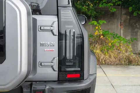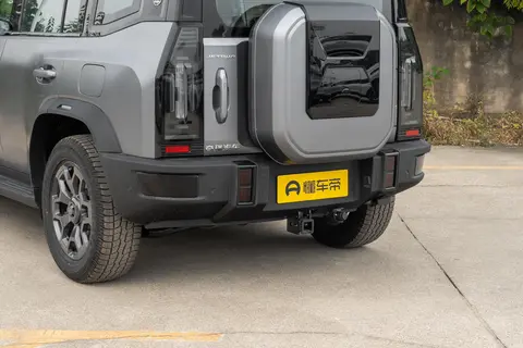 后包围两侧新增矩形设计元素,具体功能待官方公布。车尾底部银色护板与双边共两出排气装饰强化运动感,隐藏式后拖车钩则保留了救援能力。部分车型后备胎罩可加装倒车影像,配合 540° 全景影像,提升越野倒车时的安全性。