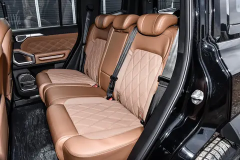 车门配备机械式外门把手,避免了隐藏式门把手冬季冻结的问题,实用性更强。全系提供黑色车顶行李架与固定侧踏板,前者可加装露营装备,后者方便上下车,尤其适合家庭用户。悬浮式车顶设计则为硬派造型注入一丝时尚感。