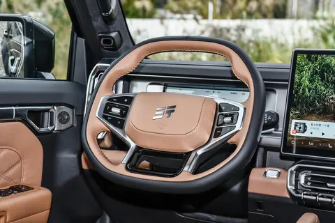 系统支持主流 APP 应用与智能语音控制,融合科大讯飞星火智能 AI 大模型与 DeepSeek 技术,语音交互响应及时,能理解多种指令。针对越野场景,“越野表盘” 功能升级,可显示海拔、气压、指南针、方向盘转角、俯仰角、侧倾角、胎压等信息,帮助驾驶员实时掌握车辆状态。