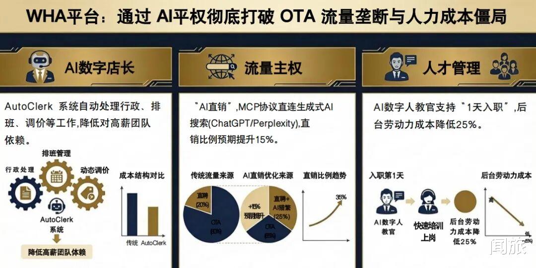 再加上本土化的AI直销方案,直连社交媒体和智能搜索,能把直销比例从20%提到35%。还有AI数字店长(AutoClerk)帮忙管排班、调价格,人力成本能降25%。这一套“硬标+软策+AI”的组合拳,就是为了确保酒店改造后能快速跑进纯利润期。