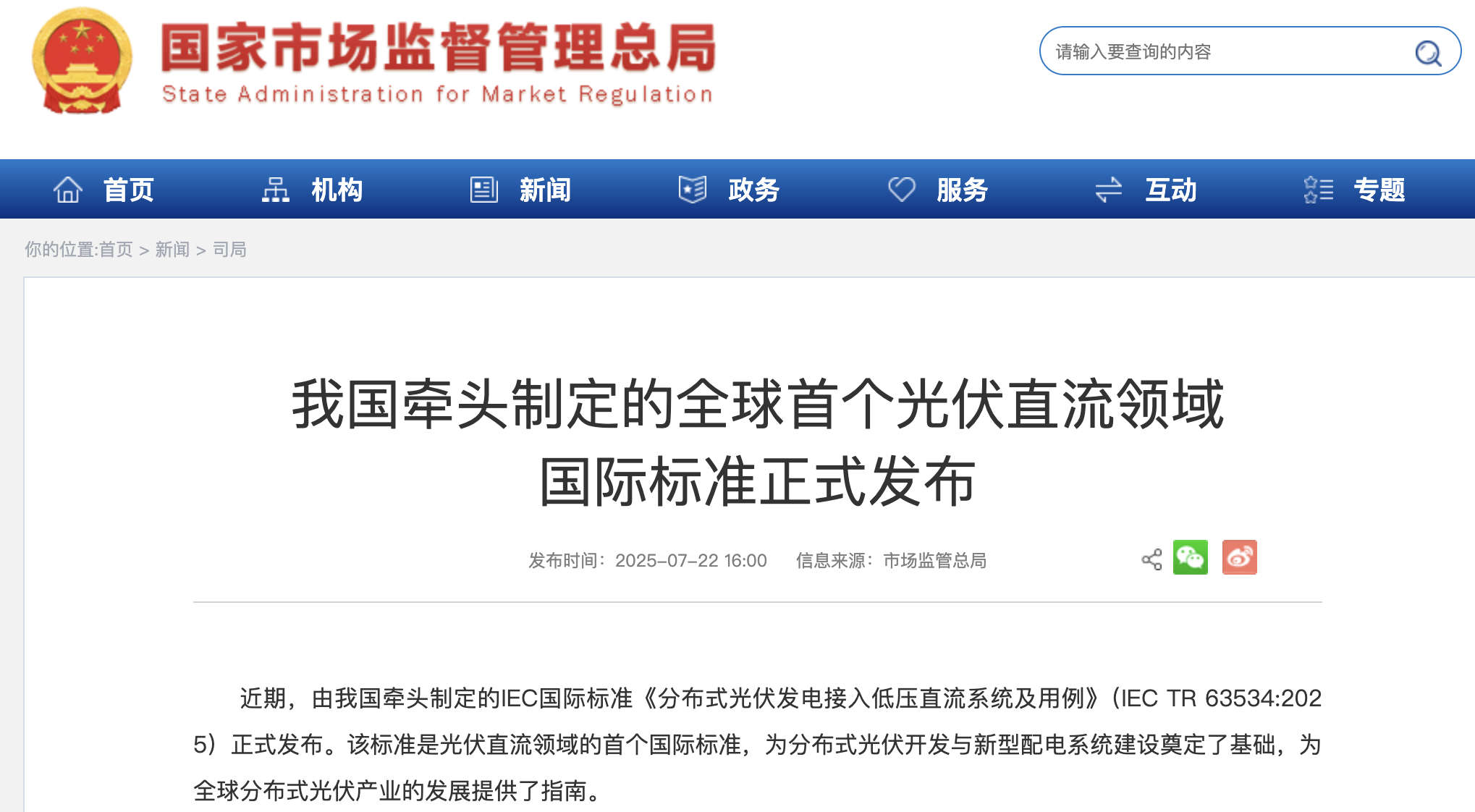 近日,我国主导的IEC国际标准《分布式光伏发电接入低压直流系统及用例》正式发布,系全球光伏直流领域首份标准。该标准由上海交通大学联合14国专家历时4年制定,明确分布式光伏接入低压直流系统的技术规范,提升能效5%-8%。
