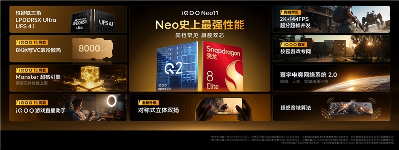 iQOO Neo11是一部真正理解玩家需求的“实战派装备”。它在帧率稳定、触控跟手、视听协同三个关键维度上实现了高度统一,让标准版也能提供超越期待的完整电竞体验。