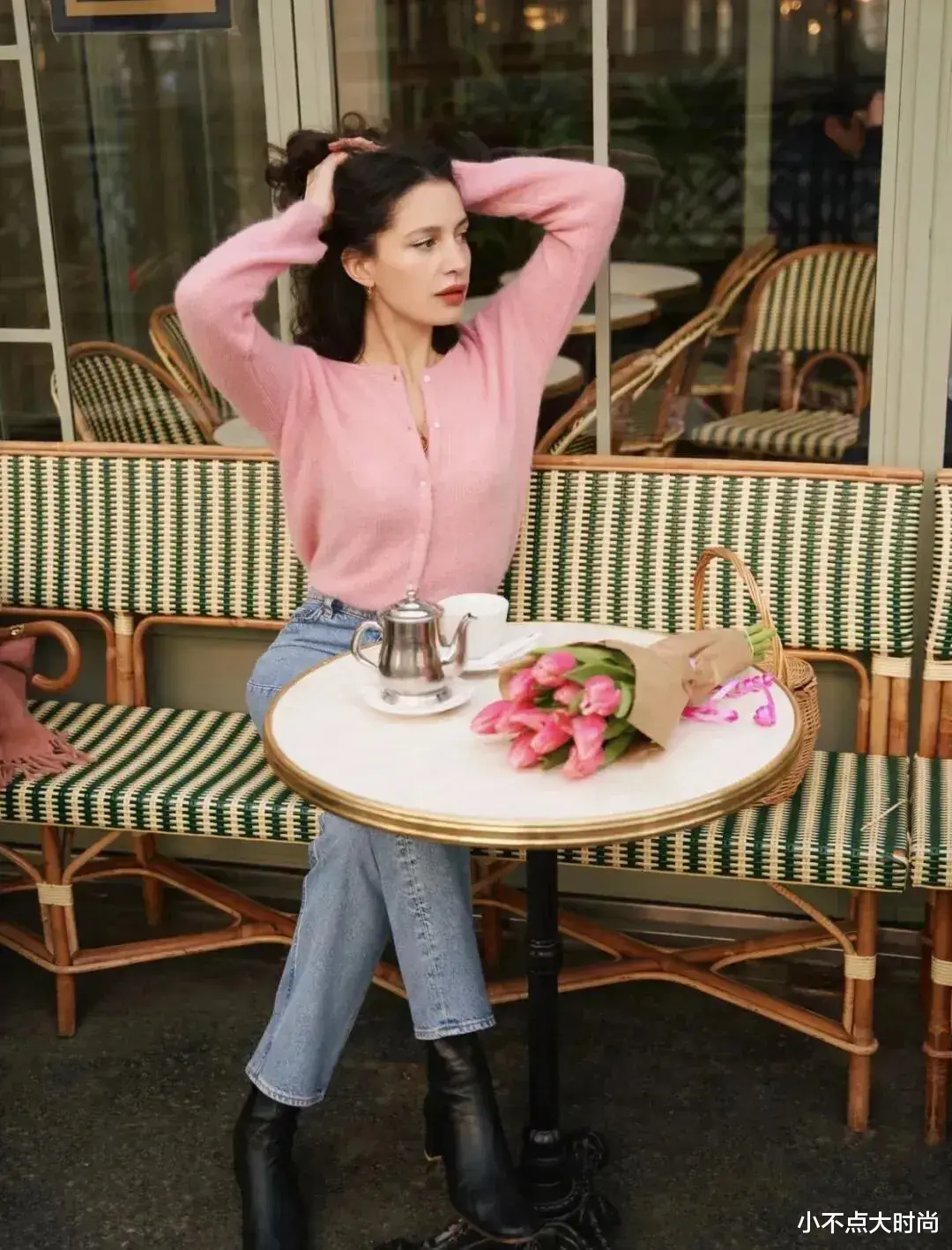黑色短靴搭配简约的浅色九分牛仔裤,极简又冷淡的风格。上衣搭配一件粉色的针织衫,温柔软糯,跟下装进行风格上的中和,飒柔碰撞,让穿搭更具时尚感,温柔大方又简洁耐看。▼
