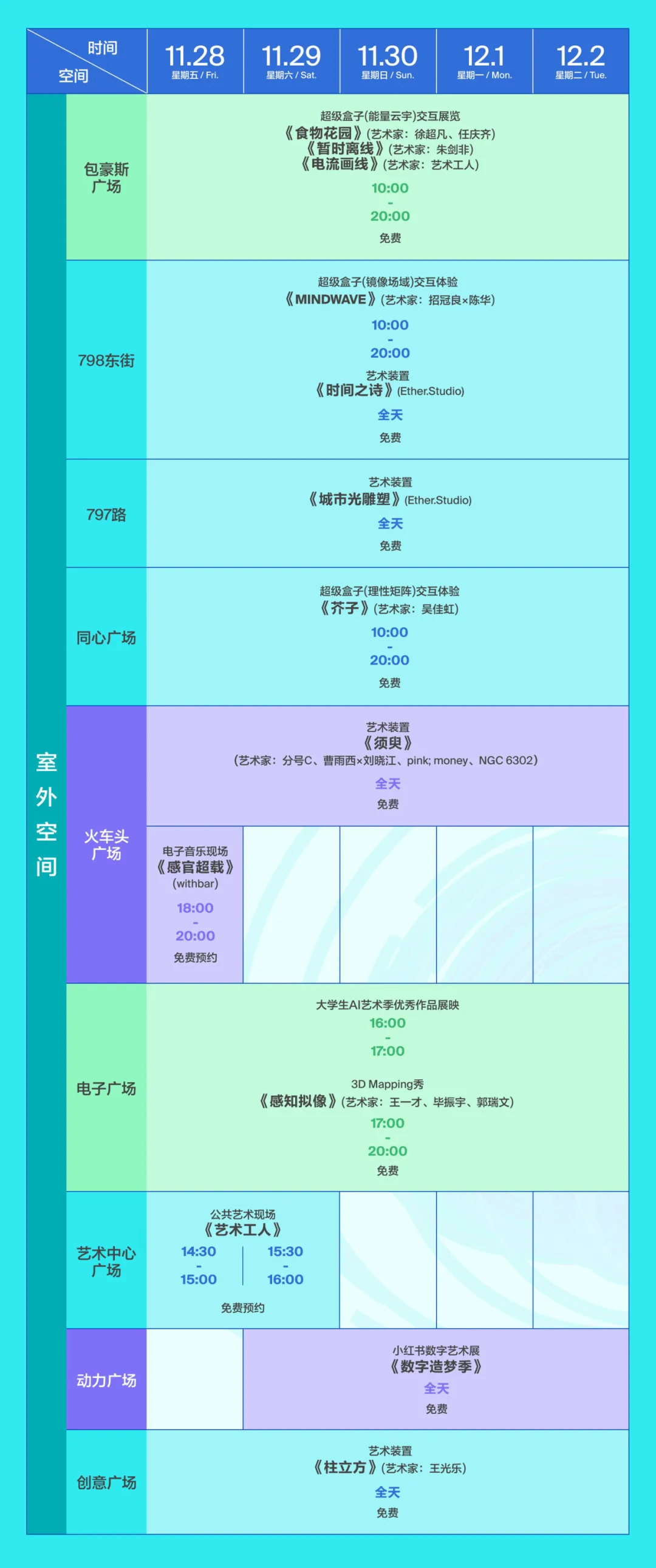 看到这里想必你已经狠狠期待住了!收好这份活动日程表与打卡地图,超多活动等你mark叫上你的搭子一起high逛北京艺术与科技周~