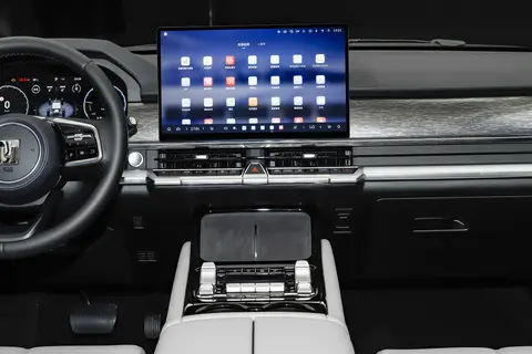 内饰布局与现款相似,配备12.3英寸全液晶仪表、15.6英寸2.5K中控屏(较现款16.2英寸微调)、HUD抬头显示及怀挡式换挡机构。搭载第三代Coffee OS车机系统和Coffee GPT大模型语音交互,支持OTA升级。智享版座椅采用Nappa打孔真皮,前排加热/通风,主驾3挡8点式按摩;后排配备15.6英寸2.5K娱乐屏、5.4升车载冰箱(-6℃至50℃调节)、手动遮阳帘及14扬声器音响,营造豪华休旅氛围。