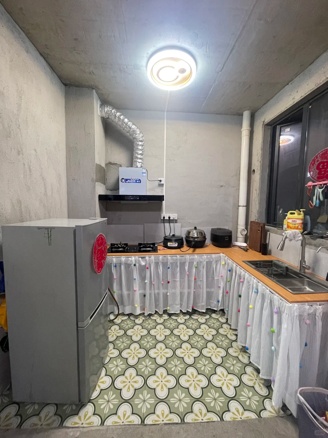 毛坯房入住,也就是简单的收拾一下房子,不做任何的装修设计,安装了最基本的水电,满足日常的生活。
