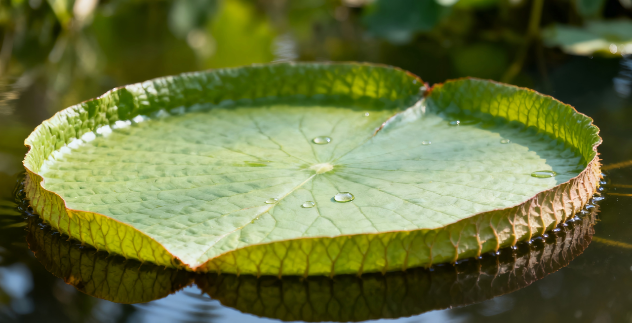 图为王莲,叶背生刺,生长时会回旋运动抑制周围的叶片