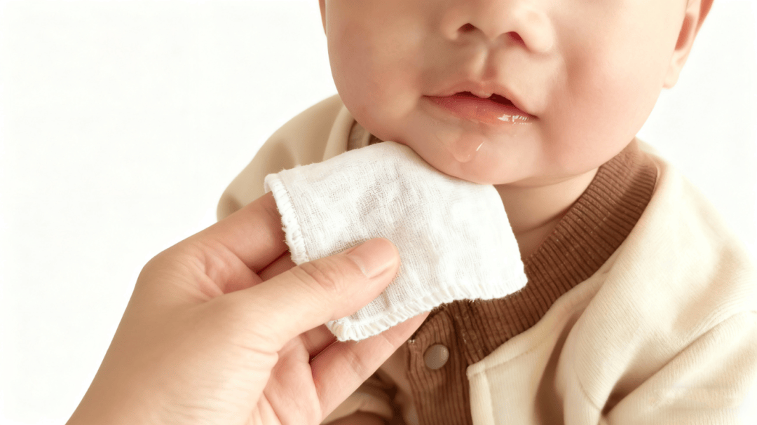 正确的做法是用柔软的纯棉纱布,轻轻按压吸干口水,不要反复擦。