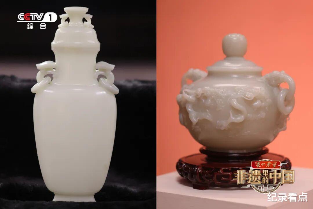 山赋其形,匠予其神。和田玉玉雕的技艺核心,在于因材施艺与精工细作的相得益彰,其制作流程涵盖选料、问料、出坯、绘形、粗雕、细雕、细致刻画、上面、抛光等多道技艺。高51.5厘米的玉雕作品《灵芝瓶》,耗时3年,用110公斤的和田玉籽料雕刻而成,其素面的打磨纯靠眼力;玉雕作品《九龙罐》,罐外周围的雕龙与罐身服帖,细看每一条龙身的厚度也一致……这些无不体现着传承人顺“玉”而为的艺术功力。