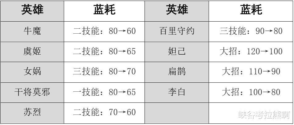 本次官方还降低了以上9位英雄的蓝耗数值,这对于妲己、扁鹊来说效果还是更加明显一些。