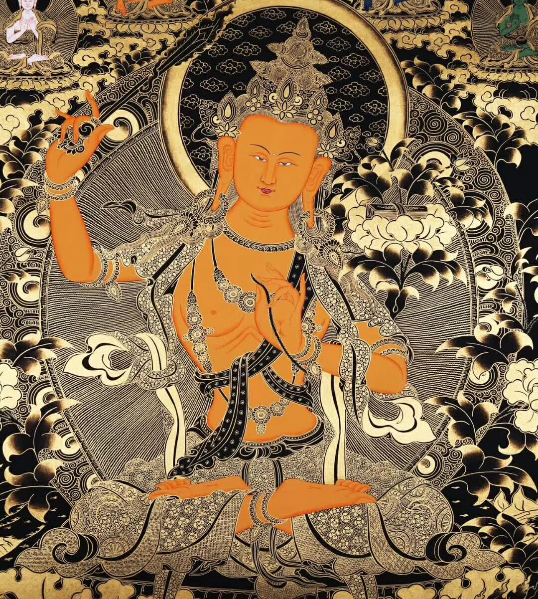 接下来请朋友们欣赏一组沃唐卡编号为158-559697的文殊菩萨唐卡:
