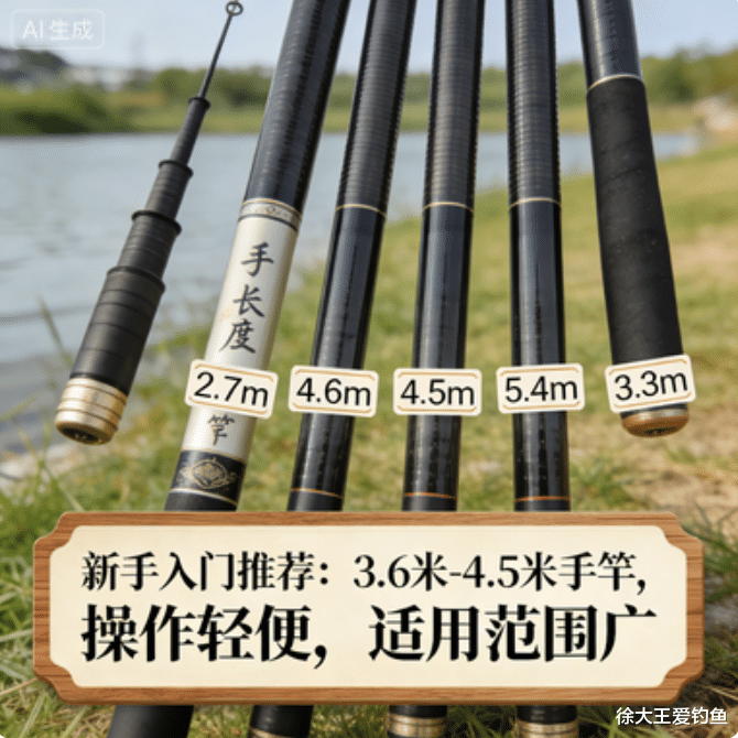 刚入门钓鱼的新手,买手竿时最纠结的就是“选多长”——市面上手竿长度从3.6米到10米以上五花八门,听商家说“长竿钓远、短竿钓近”,又听老钓友说“新手选中等长度”,越听越糊涂。选短了怕钓不到鱼,选长了又觉得笨重难操作,最后盲目跟风买了一根,结果要么用着累,要么不适合自己常去的钓场,白白浪费钱。其实手竿长度的选择,核心是“适配作钓场景和自身操作能力”,不是越长越好,也不是越短越灵活。今天就把手竿长度的划分标准拆透,再结合新手的实际需求,给出具体的选购建议,帮你避开90%的坑,一次选对适合自己的手竿。