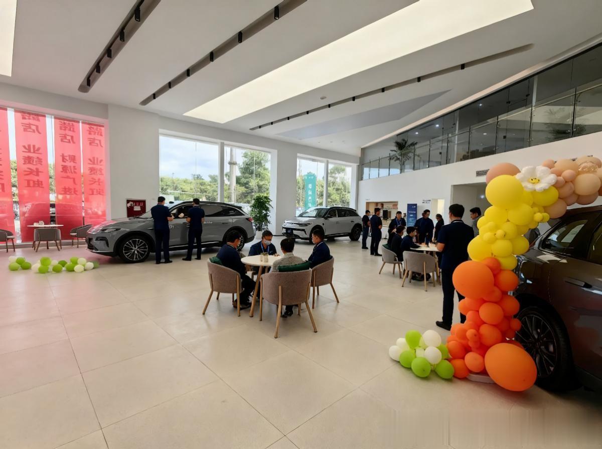 我按照指引来到零跑汽车体验中心双华路总店。远远就看到外面锦旗招展,恭贺开业的横幅飘扬,展厅外放满了车。“从早到晚试驾没停过,昨天我一个人就接待了5组客户,全店试驾超过15组。”双华路总店的销售顾问指着店外排队的试驾车说道。