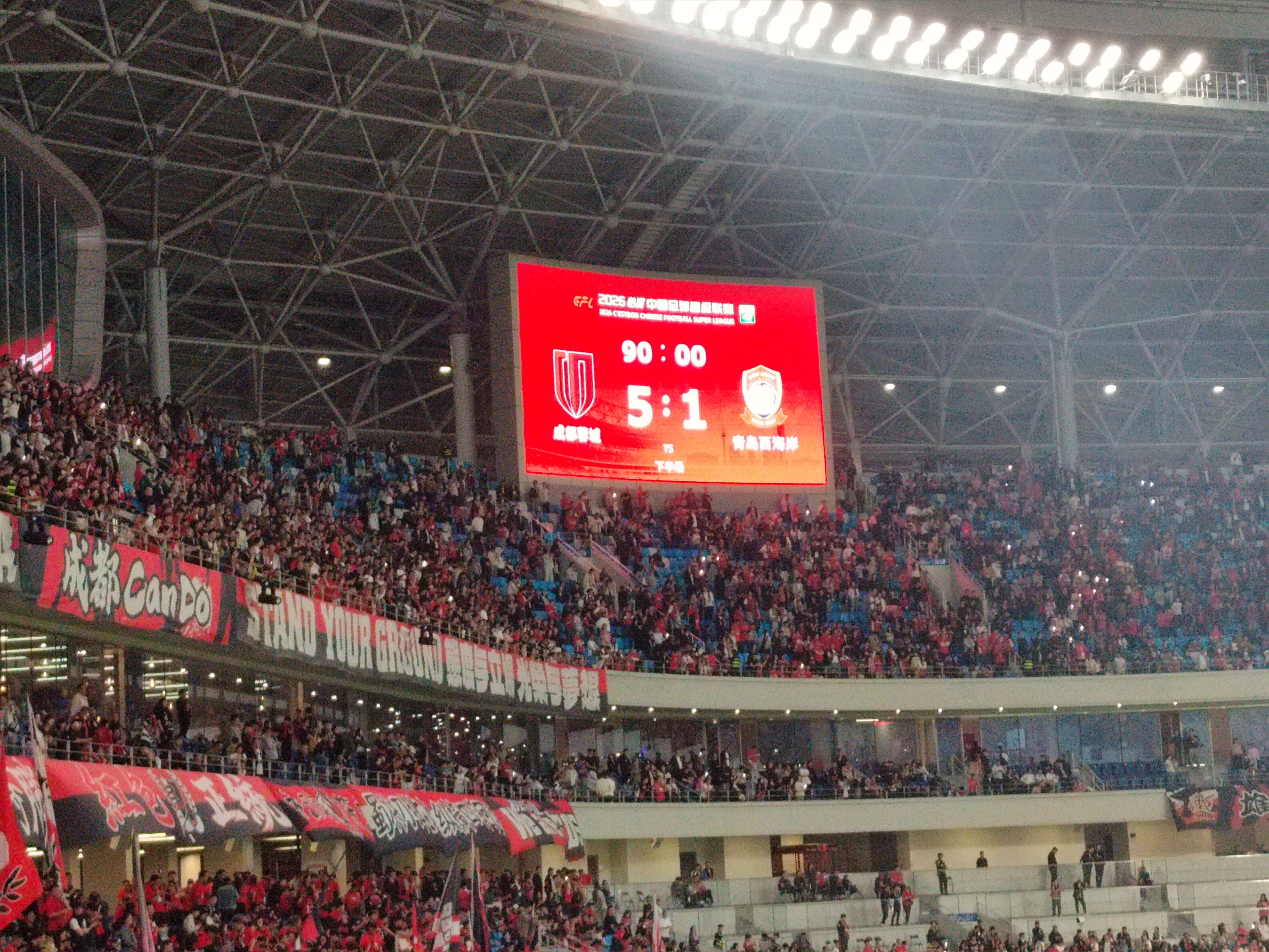 就竞技层面而言,本场比赛算不上重头戏,然而“榜首保卫战”与春假、清明假期叠加,比赛热力十足。本周三本场比赛球票发售,仅3分钟球票售空。“金牌球市”热情如火,蓉城球迷热情奔赴,41352名球迷现场观赛。3日,凤凰山专用足球场早早就歌声嘹亮,不少休春假的学生来到球场,给凤凰山增加了更多青春的力量。19时,公益看台唱响《相信我们会创造奇迹》,600名身披“在成都放心购”绶带的球迷随嘉宾的歌声一起舞动,城市的温暖、热情、尊重,在凤凰山专业足球场不断延续。据记者了解,本次公益看台的球迷有来蓉创业的放心舒心示范商家代表,有来自企业、学校、社区和新就业群体等行业代表。在灯光璀璨的球场,他们挺身而立,赋予比赛更多意义——扎根蓉城、实干兴业、诚信经营、创新创造,携手共筑成都更美好的明天。观赛商家代表表示,希望将凤凰山涌动的足球激情带回企业,让自己的企业像成都蓉城队一样勇攀新高,为城市发展贡献更多力量。