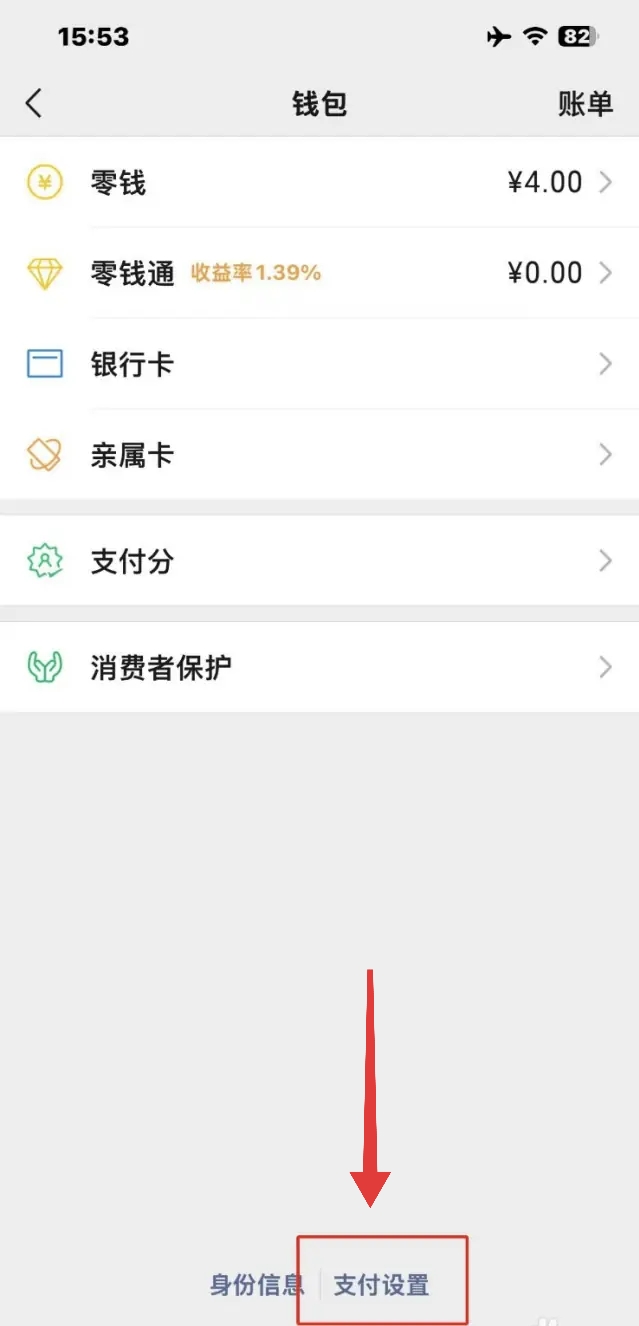 2.进入到钱包页面后,点击:支付设置。