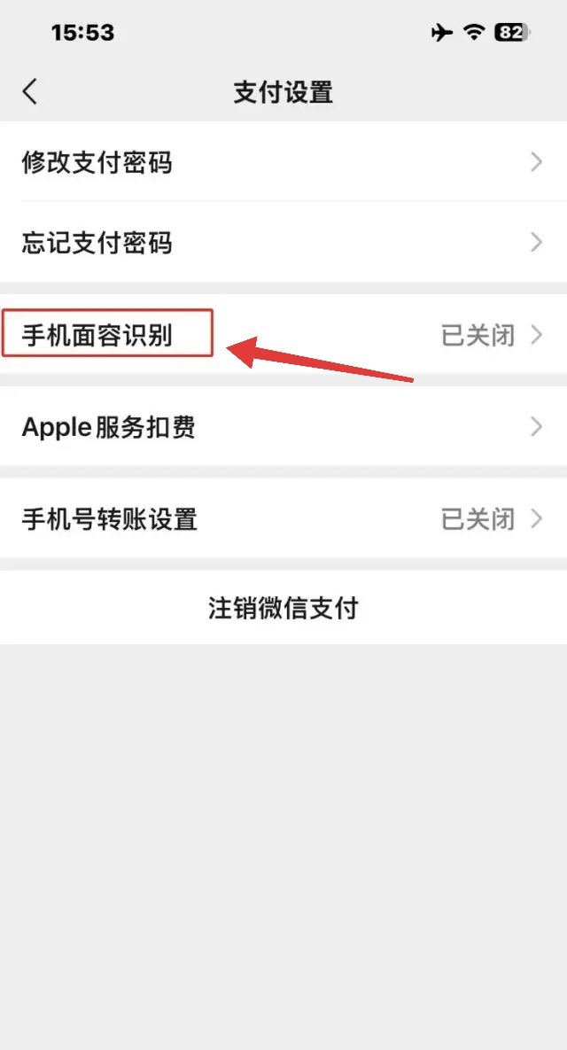 3.进入到支付设置页面后,点击:手机面容识别。