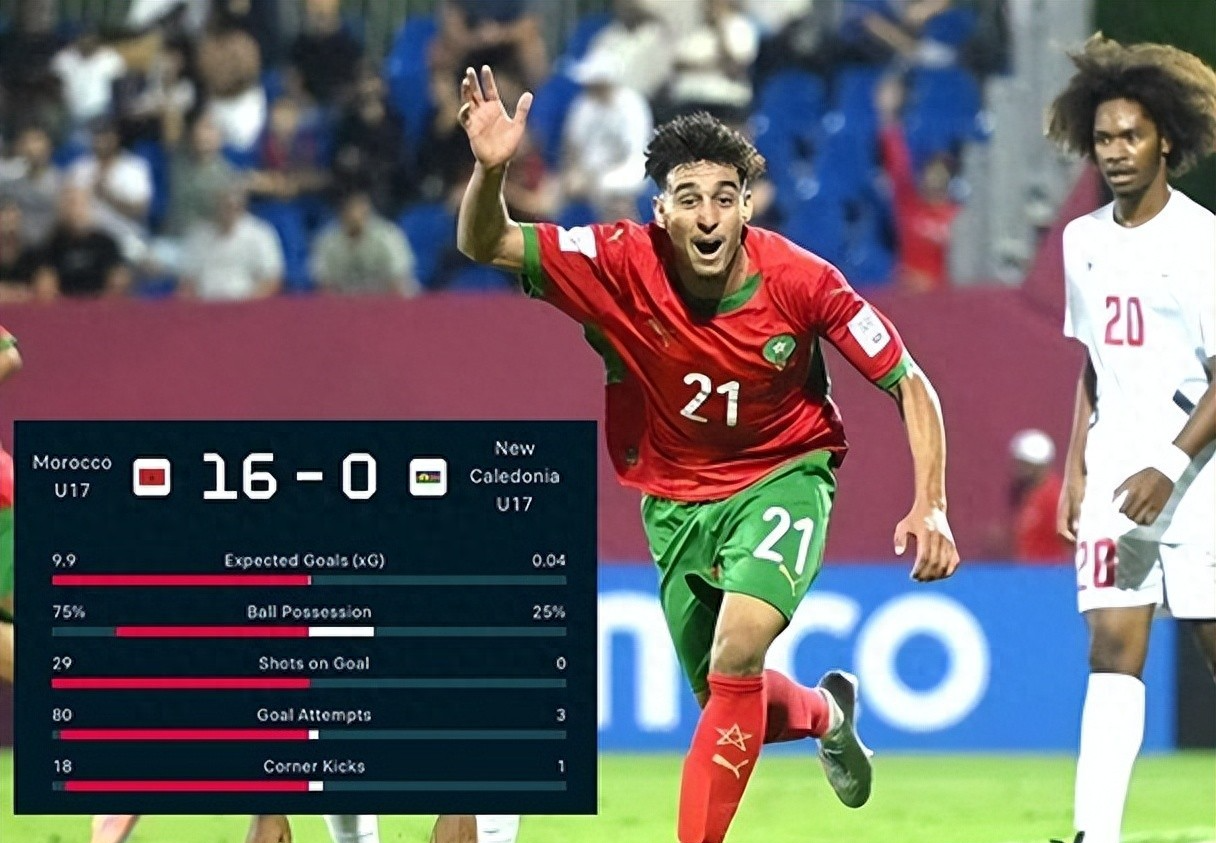 世少杯目前正在卡塔尔进行,当地时间周日(9日)上演了的小组赛中有惊人赛果,非洲劲旅摩洛哥U17队竟然是以16比0狂胜大洋洲代表新喀里多尼亚U17队,打破世少杯历史上的最大比分胜仗纪录。