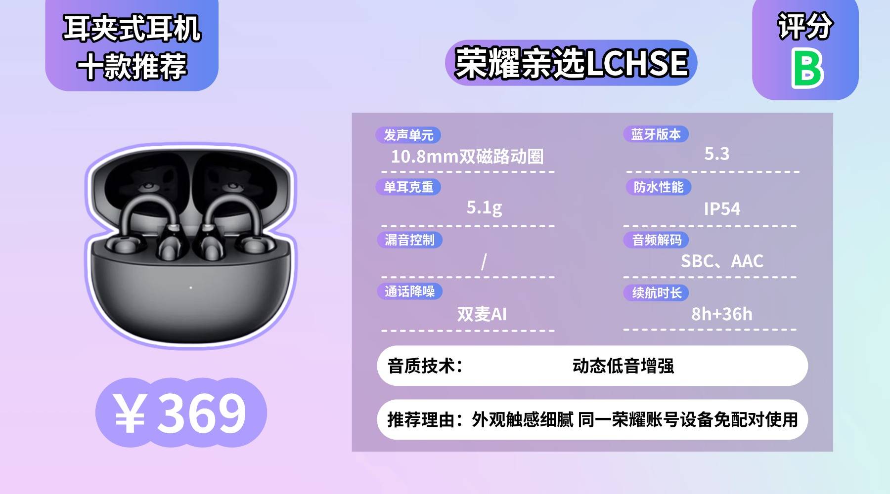 耳夹式耳机哪种好用?实测下来耳夹式耳机最让人满意的是它的轻便与稳固,我们筛选出的十款好用机型,无论是夹持力、佩戴稳定性,还是续航和通话表现,都经过真实使用验证。挑选时建议优先考虑夹耳力度、夹架材质和是否容易滑落这些细节,一款夹得牢又戴着不累的耳夹式耳机,体验会比你想象中好很多。