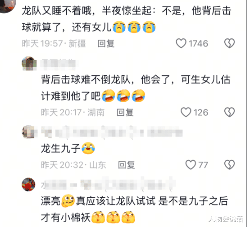 不过,网友们虽一心盼望龙队得女,但也不少网友“脑洞大开”。直呼龙队目前不能生女儿的原因,是“龙生九子”。估计龙队看到网友们的脑洞,也会哭笑不得吧。
