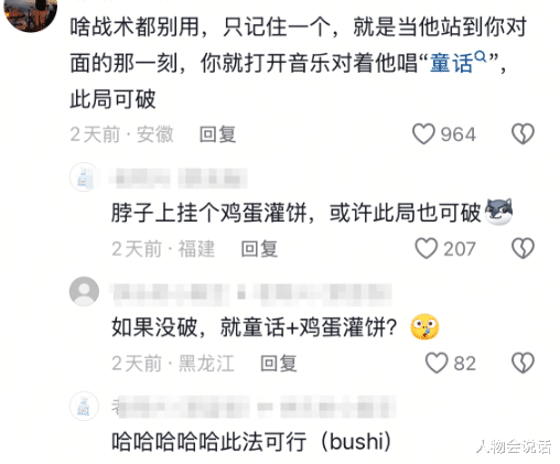 看到网友们“脑洞大开”,估计周雨跟小胖还没交手,就得被网友们的建议,乐开了花。有建议周雨,在比赛时,一定要唱《童话》。尤其要唱那句,“你哭着对我说,童话里都是骗人的”。这样就可以暂时把小胖迷惑住,然后趁机“打他”。