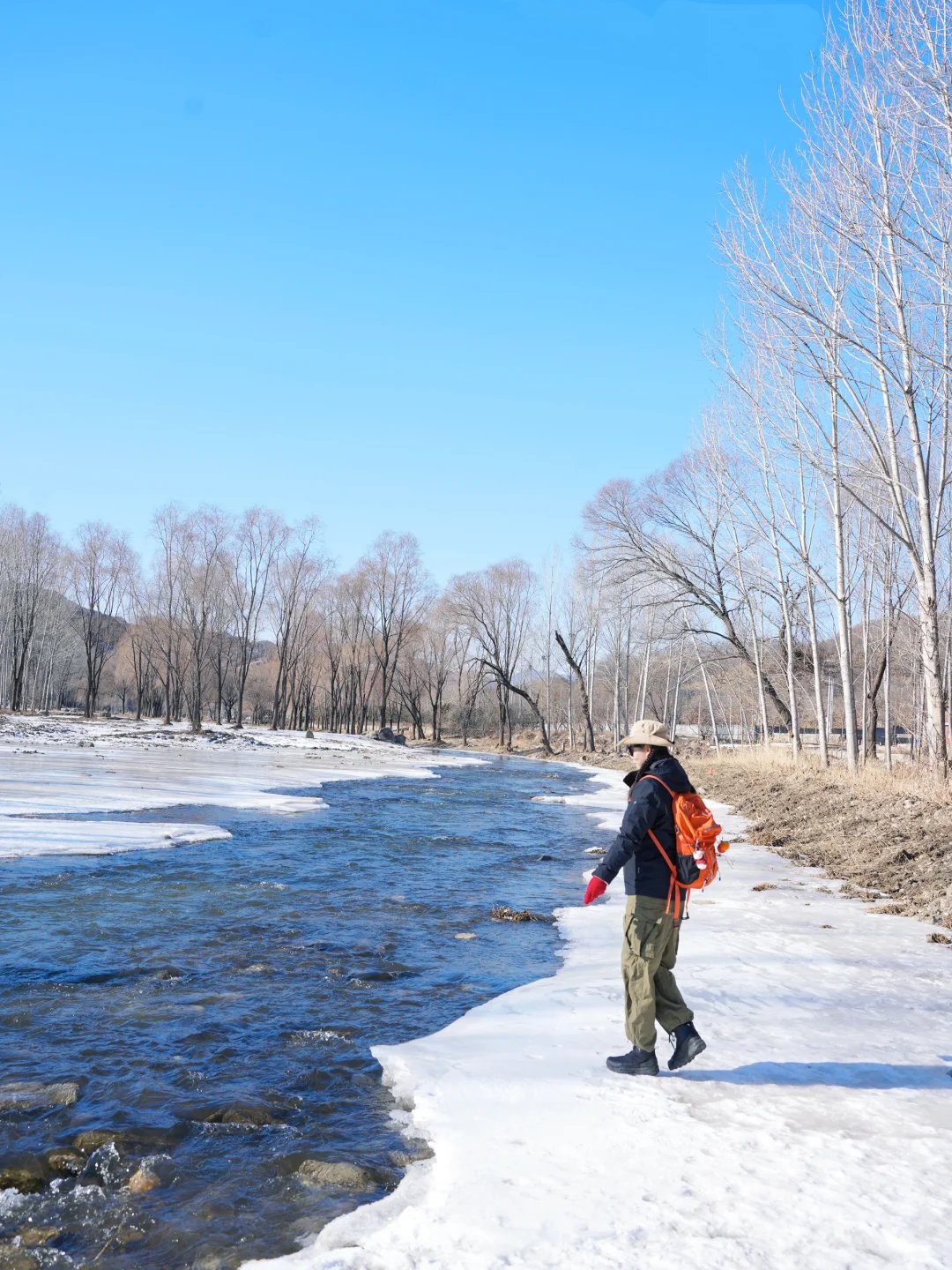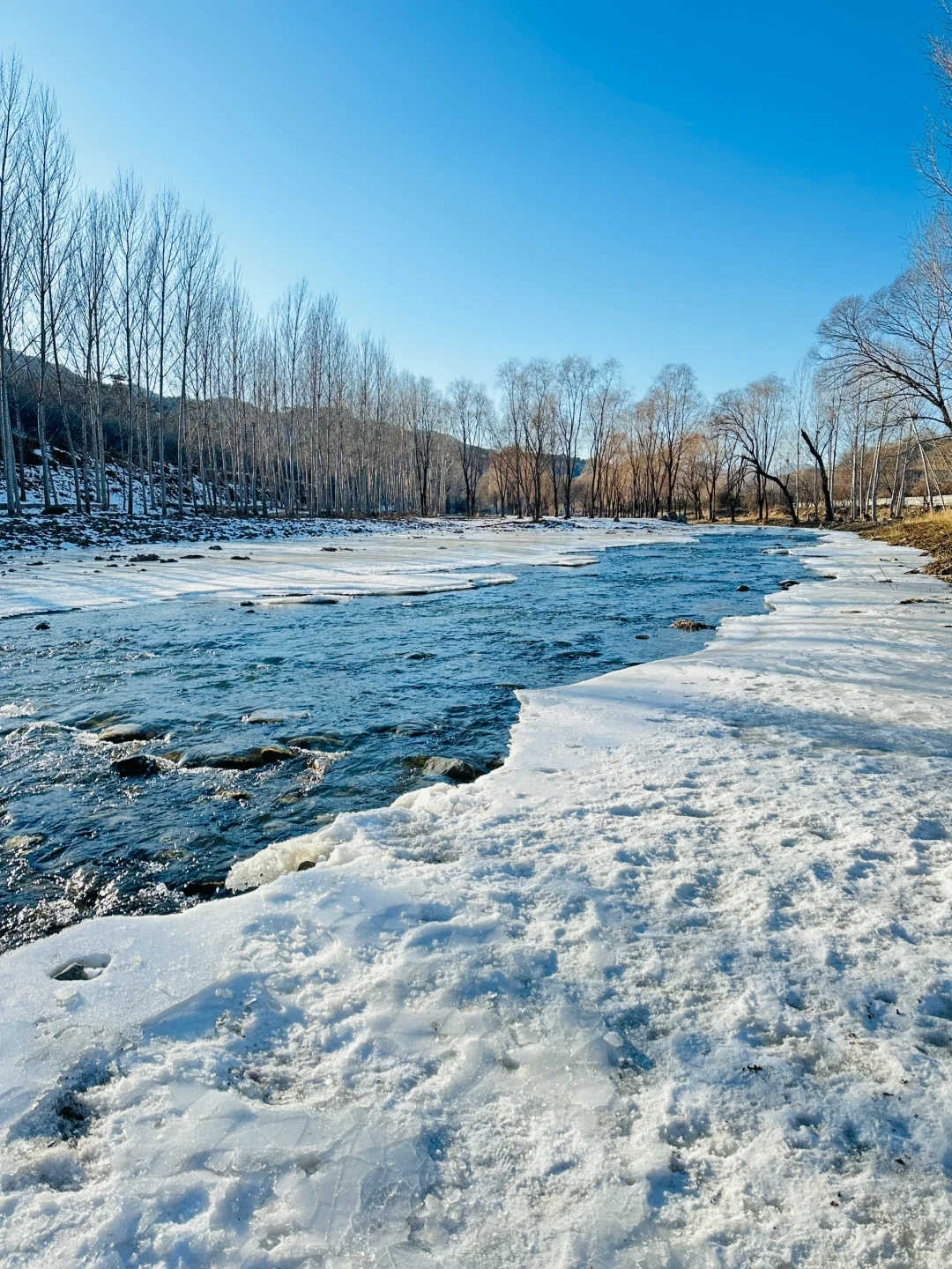 🧊位置二:五渡河公交站半冰冻半流淌的河水,冰河世纪即视感,个人蕞喜欢这里,可以拍出好看的照片有停车位,卫生间在维修状态