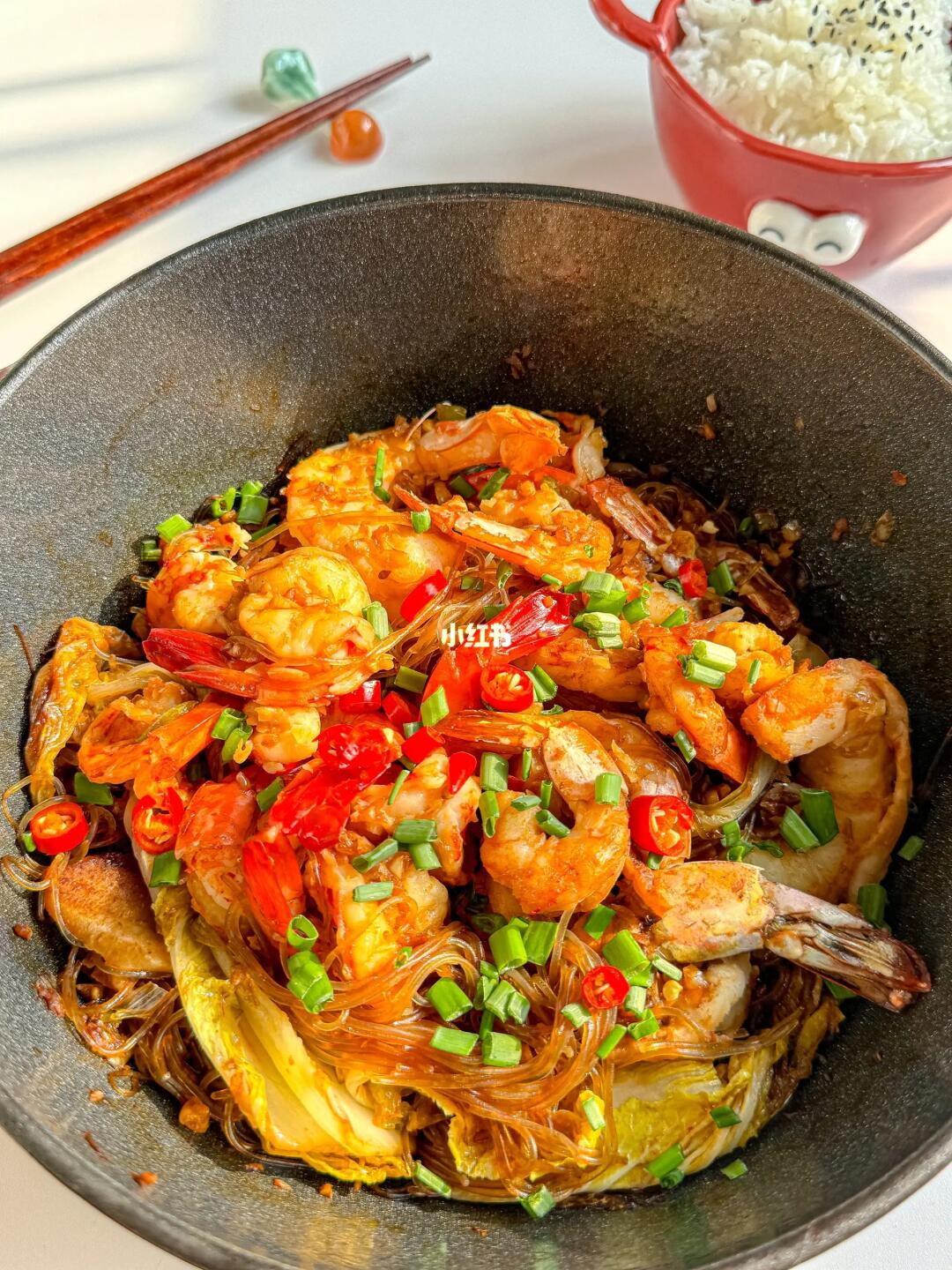 大口吃虾🦐 大口嗦粉 超级浓郁的蒜蓉味 完全不输饭店 🗒️食材:虾/娃娃菜/粉丝/葱姜蒜/小米辣 👩🏻🍳制作: 1️⃣粉丝提前用温水泡软 2️⃣虾去头去壳,划成蝴蝶状 3️⃣蒜蓉酱:大量蒜蓉➕青椒(能吃辣的可以在切点小米辣)➕泼热油➕三勺生抽➕半勺老抽➕一勺蚝油➕一勺白糖 4️⃣葱姜蒜炒香,铺上娃娃菜,放上粉丝,摆上虾,淋上蒜蓉酱,淋上一小碗清水 5️⃣盖上盖子中小火🔥焗10分钟 6️⃣出锅撒上葱花