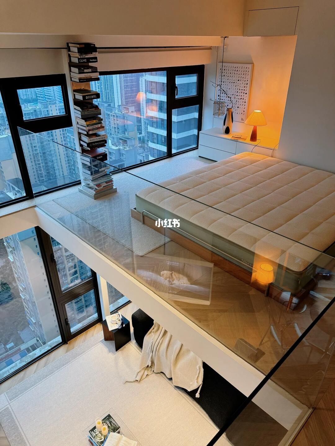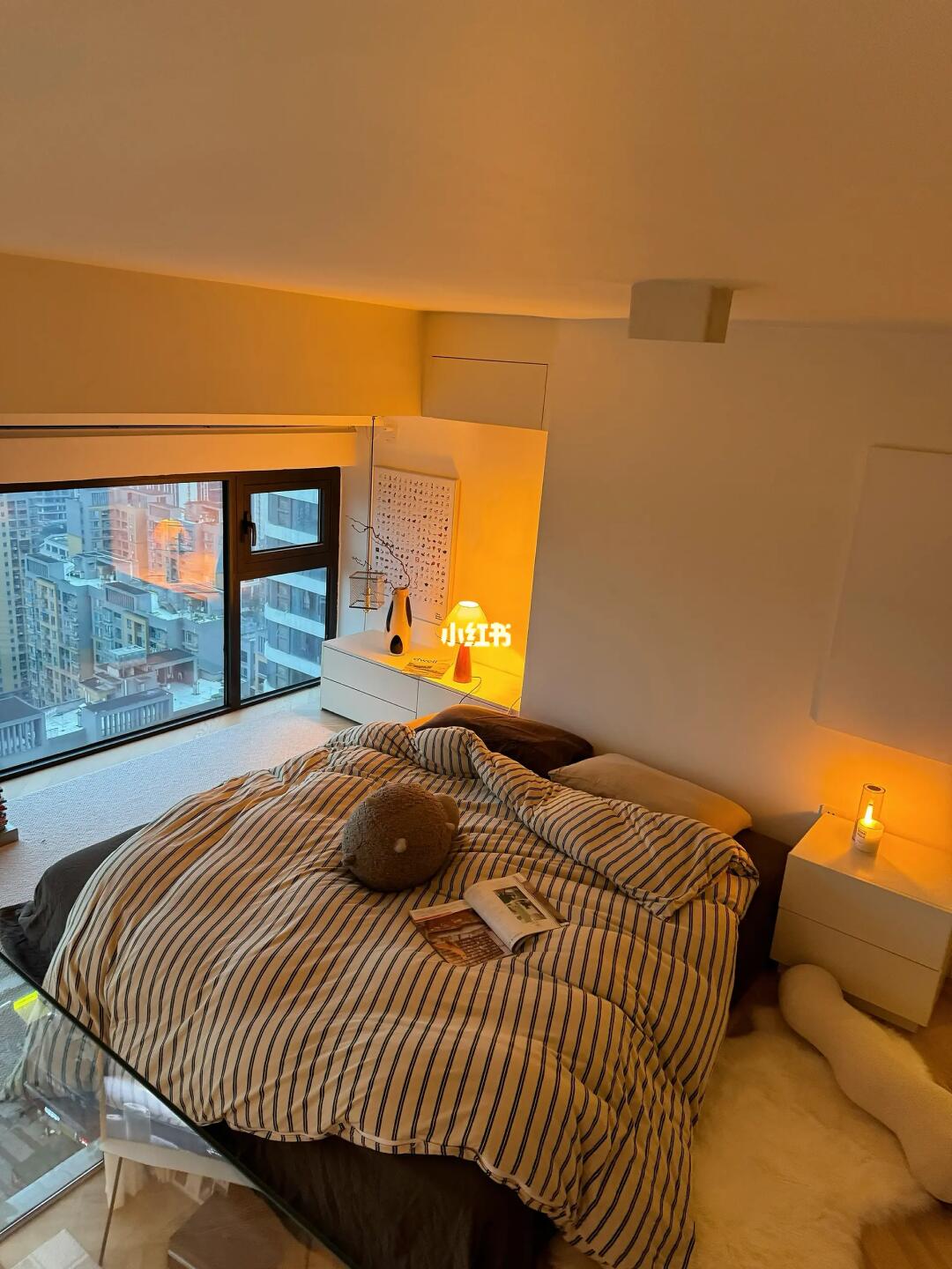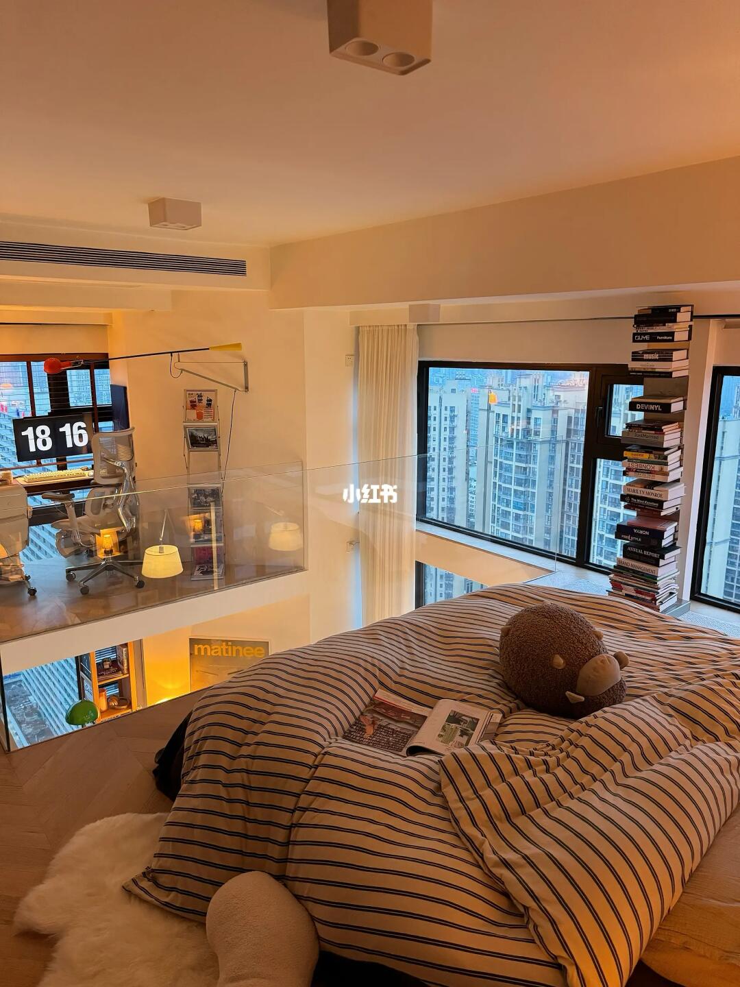 卧室书房:用了玻璃做隔断,让整体视觉通透感更强,窗外的视野开阔,白天采光好,到了晚上家里灯光超级有氛围感,开放式卧室还是得配上面料透气,软硬适中的大床垫,躺上去柔软贴身,又有支撑力,怎么睡怎么滚都舒服