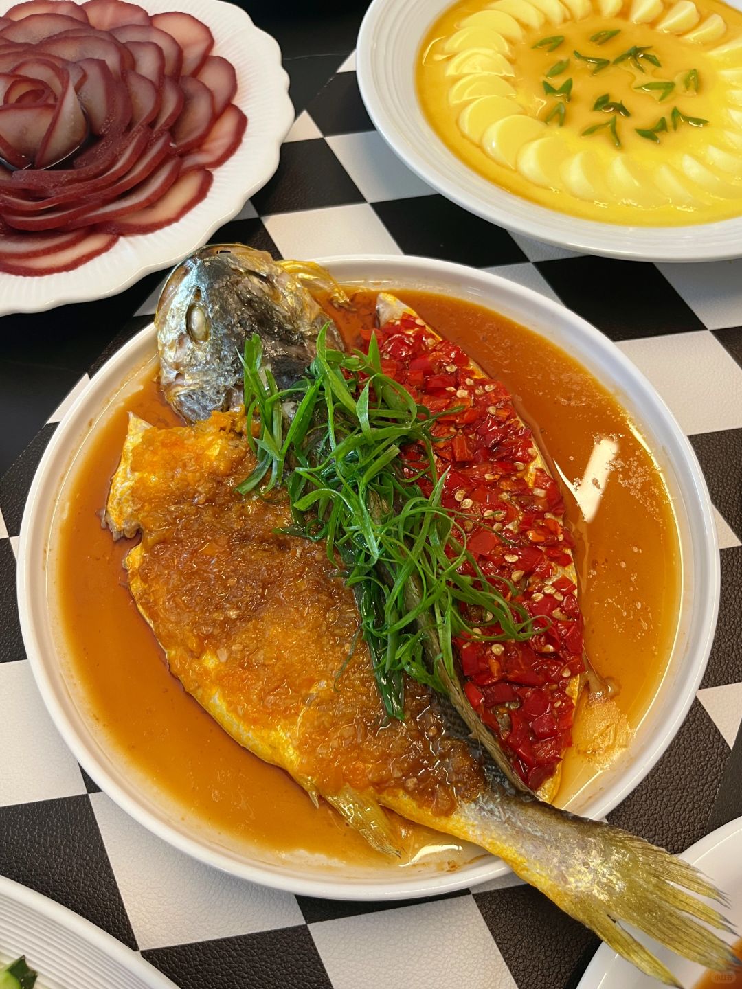 家宴当然是好酒好菜少不了,拿出来新收到的圣芝G90红酒来招待大家,宝石红色,香气充盈,口感柔顺饱满不酸涩,作为佐餐红酒大家也很满意~很喜欢这个喜庆的龙年礼盒,精致大气送礼也很合适哈~今天还用它做了一道红酒雪梨,做法很简单,清甜爽口大家快试试呀~