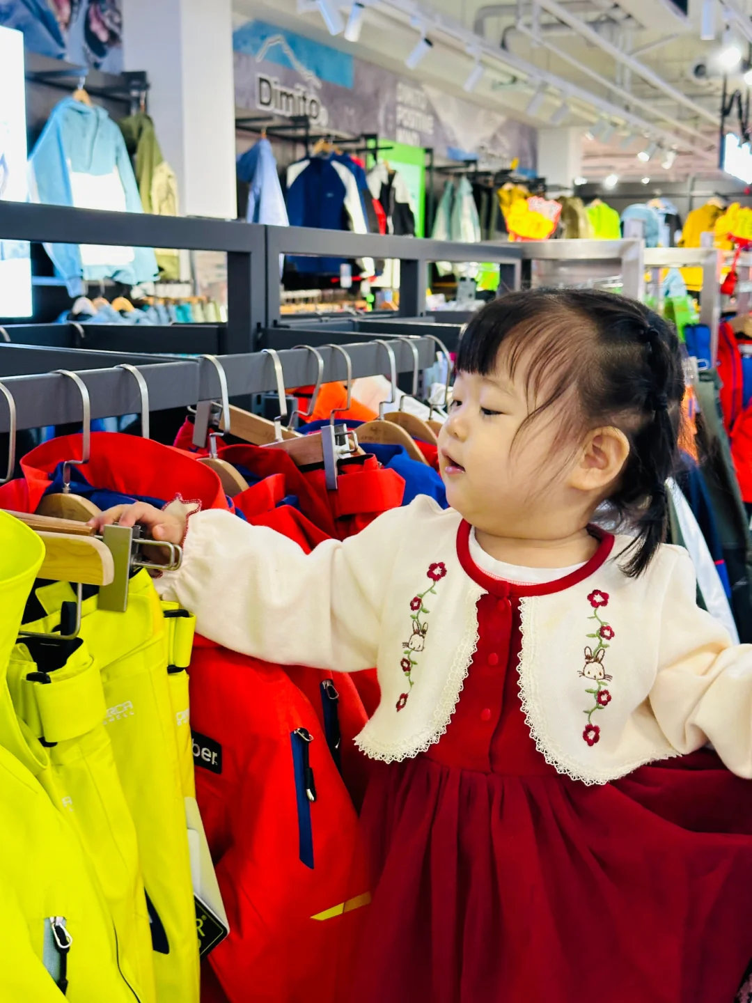 8️⃣层:雪服为主,单板、双板滑雪服品类齐全,款式多样,15个月小葡萄也拥有了人生第一套雪服
