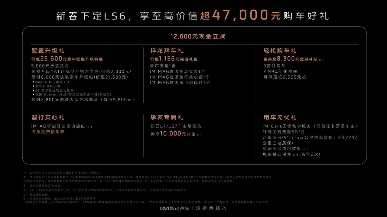 智己,一个以“智”为名的品牌,对电动智能化尤其是智驾的抢滩登陆,比人们想象的更猛烈一些。在近日的智己新春发布会上,智己公布了一系列硬核猛料,皆与智能化相关。 首先,在智驾方面,IMOS 2.7.0(Beta)龙年贺喜版整车OTA软件上线,这也意味着继高速NOA 后,智己的城区NOA也宣布开通,车辆可以流畅实现无保护左转、智能选择车道、主动避让/让行等功能。显然,城区NOA的开通意味着智己在智驾领域已经迈入了第一梯队。 时间上,智己的城市NOA已在1月23日如期推送,上海地区率先开放。同时,智己还宣布将在今年6月推出无图城市NOA。无图NOA即高阶智驾不再依赖高精地图,这也意味着智己的城市NOA将落地除北山广深等一线城市外的更多城市,尤其是下沉地区,率先打破业内高阶城市智驾仅限于一线城市的尴尬。 伴随IMOS 2.7.0版本软件,一键AI代驾迎来了2.0版本。基于此,针对侧方位停车的“一键贴边”、“一键脱困”功能也迎来了升级。同样作为新版本软件的全新功能,手机遥控泊车和洗车模式也将与用户见面。 除了实力更能打之外,智己还公布了购车权益的让利:针对智己LS6,2024年春节期间购车可享超4.7万元权益,大大提升了这款车的性价比。【来自懂车帝车友圈】