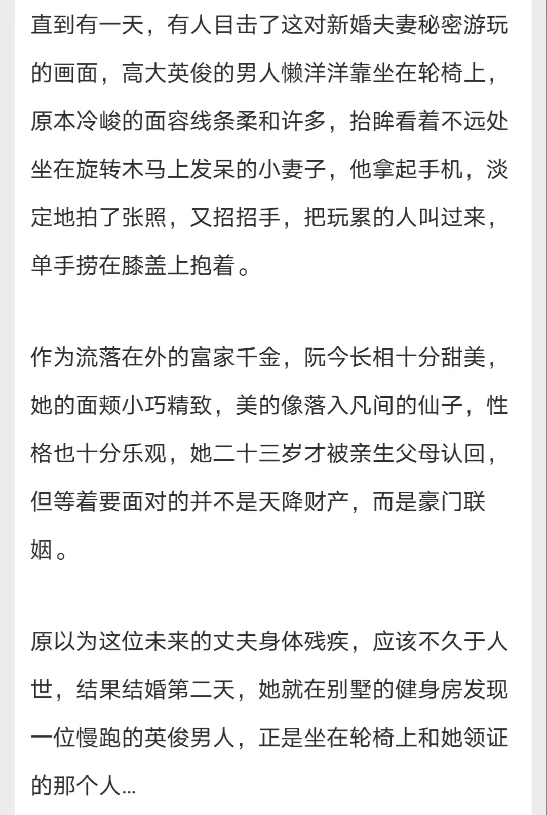 心狠手辣矜贵大佬x甜美小娇妻 豪门联姻。甜甜甜!设定好带感,我是土狗我超爱这种调调哈哈哈哈!好久没有看男主坐轮椅的了,心中大佬独宠她的小娇妻设定谁能拒绝呀!!!都去给我看
