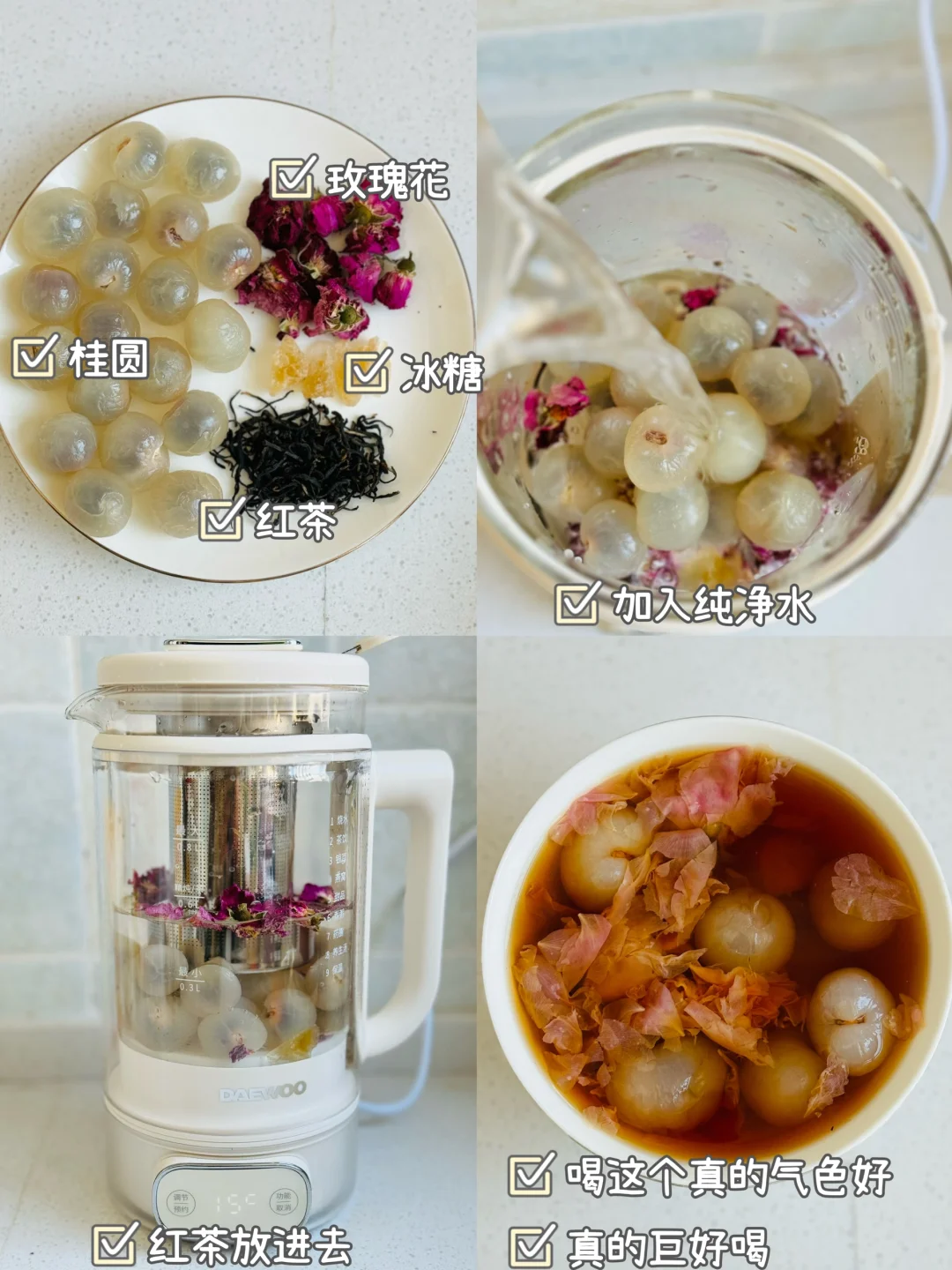 桂圆➕玫瑰➕红茶(经常喝皮肤红扑扑的)