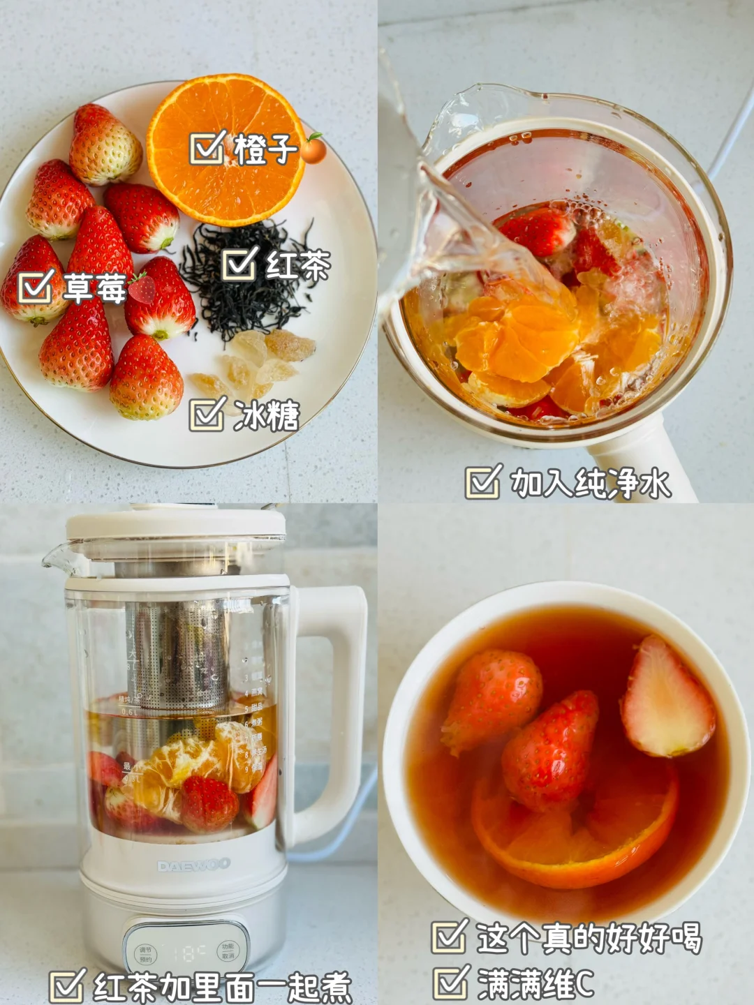草莓🍓➕橙子🍊➕红茶(经常喝皮肤亮亮的)