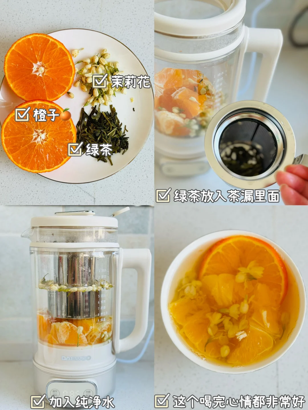 橙子🍊➕茉莉花➕绿茶(心情不好的时候喝真的解郁)