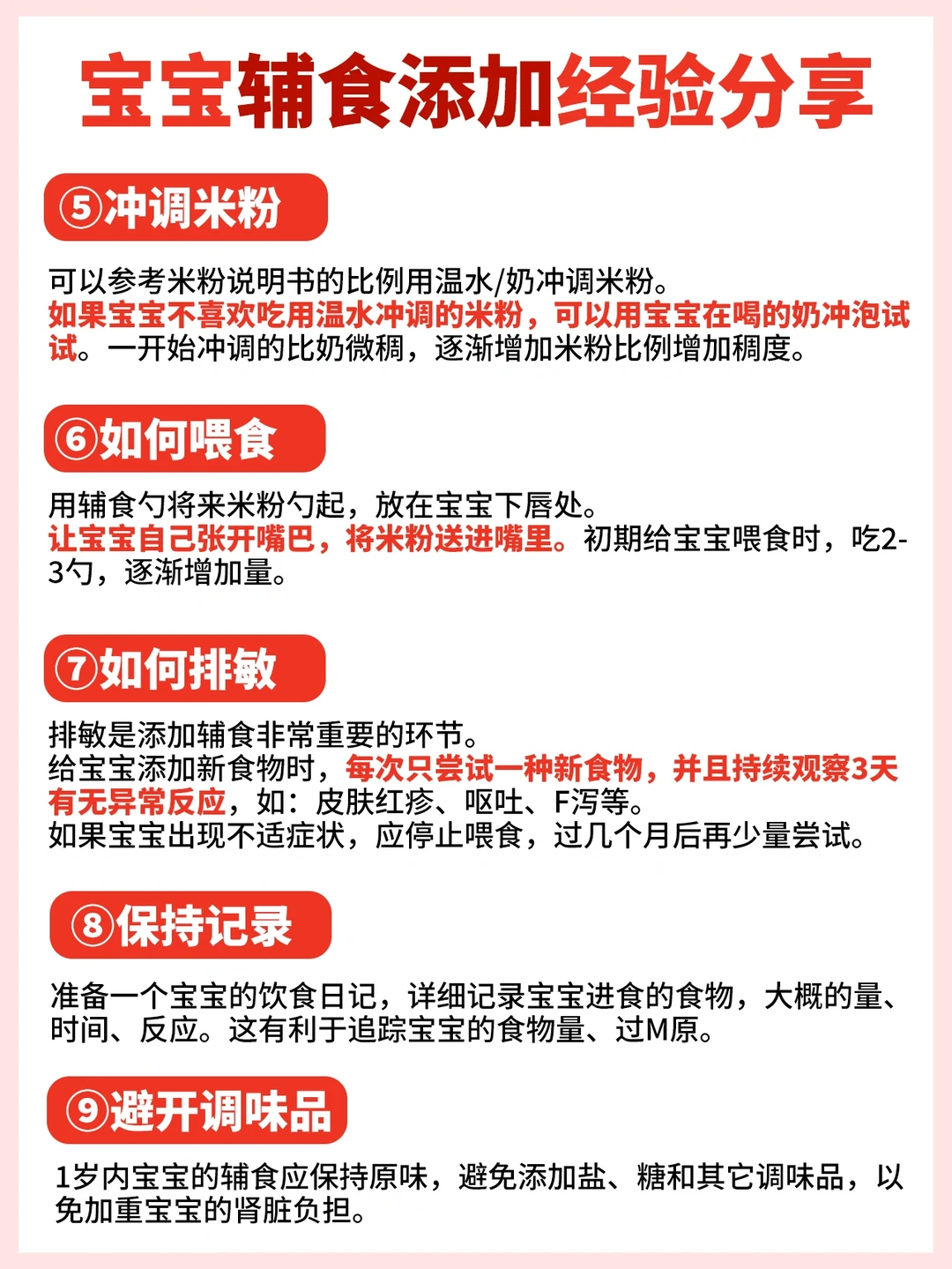 📌辅食添加重点!一次只添加一种新食物,持续观察3天有无异常反应。