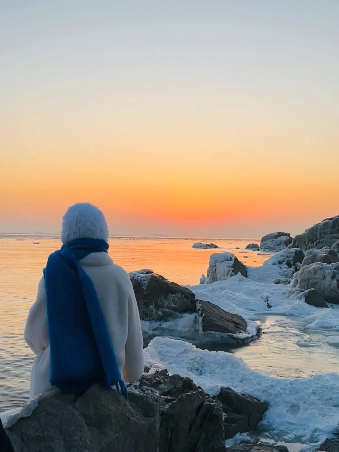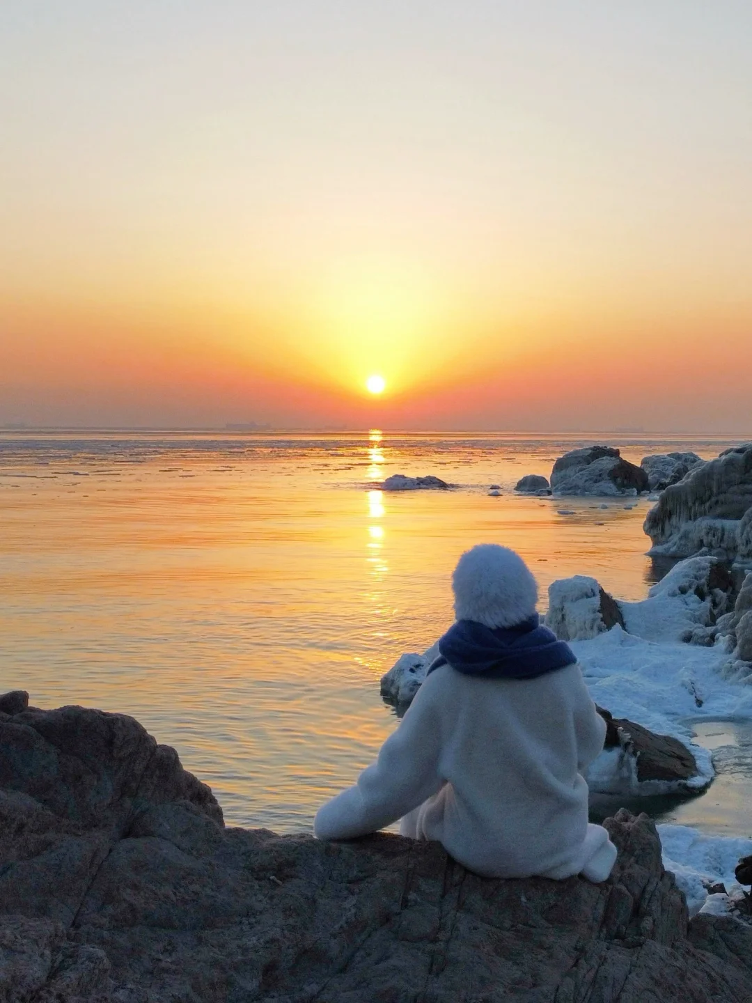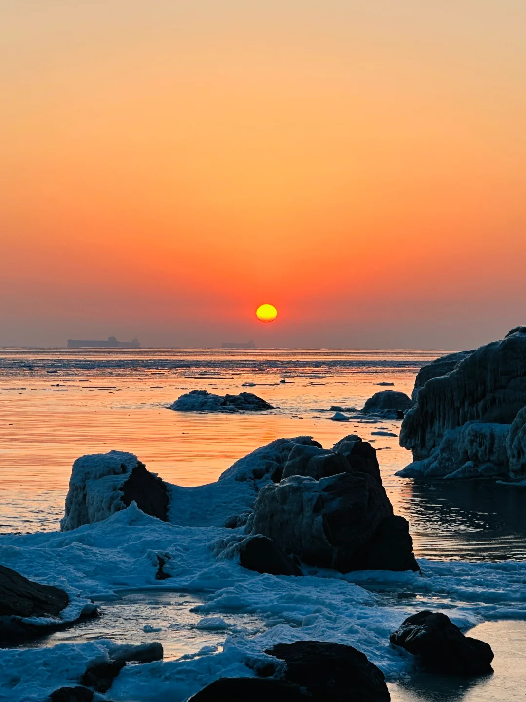 秦皇岛真的太宝藏了 冬天的日出冻海美到无法用语言形容 手机live图都拍不出它的美 🌅关于这里 1、免费小众海边,知道的人不多,开车直达海边,坐在车里看日出简直太幸福了 2、🅿️3元/小时,从我住的酒店开车过来不到十分钟,非常方便 3、海边礁石、白色冻海、海中渔船、橘色的海、渐变色天空,真的绝绝子 4、海边停车位置有限,此地只分享给真正爱护外爱自然,不污染海洋环境的粉丝宝宝,能做到的可在评论区留言或者❤️我