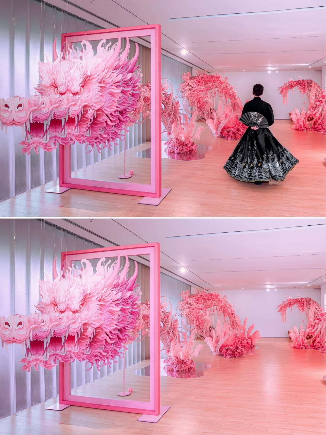 🐲龙年将近 最近一直被各地的龙🐲刷屏 却迟迟不见苏州的身影🧧 结果今天就拍到了📸 苏州独有的粉色🩷巨龙🐉 这独树一帜的风格 能给苏州扳回一局么⁉️⁉️⁉️ 📍虹美术馆 ·
