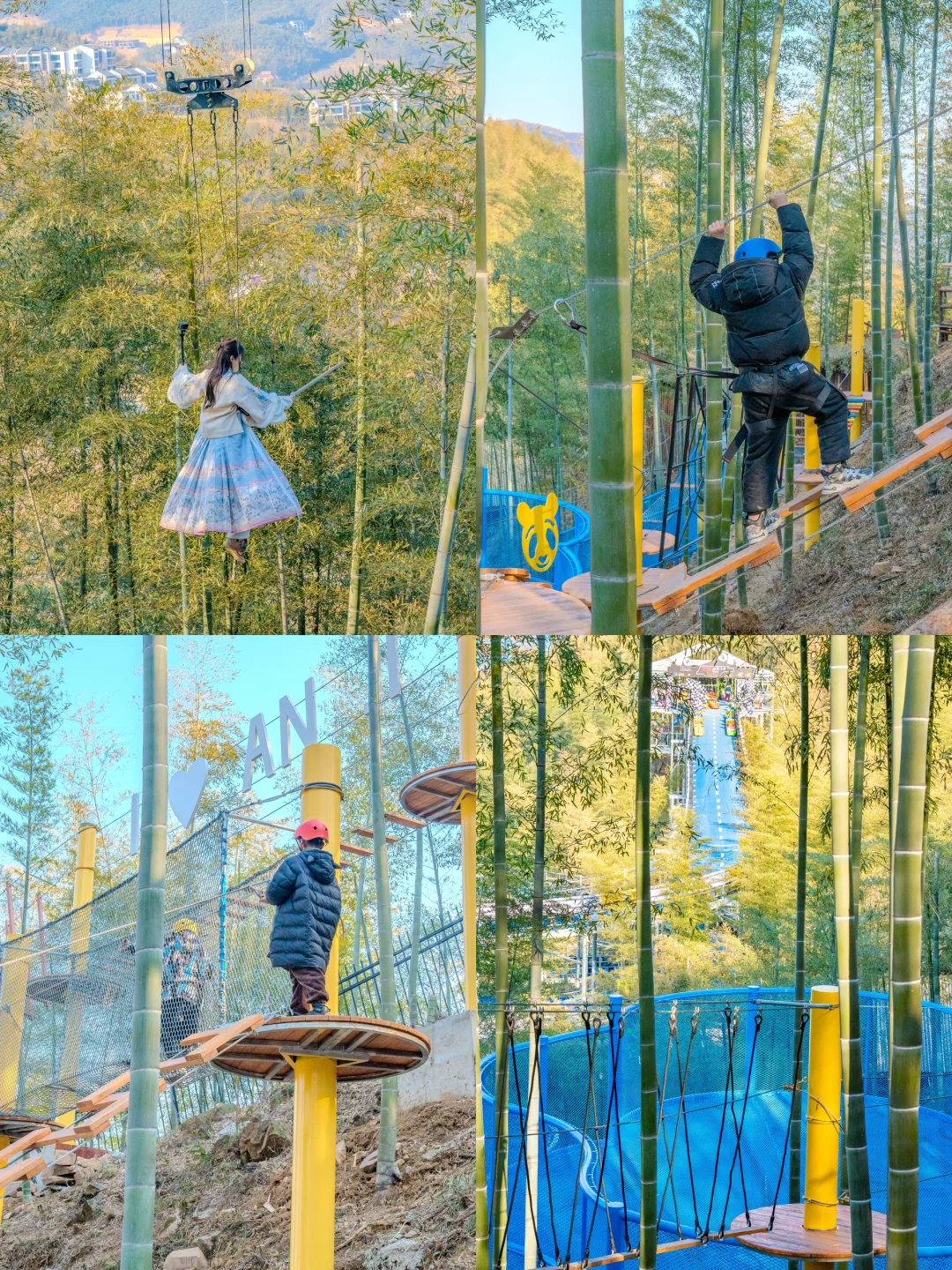 萌宠乐园—熊猫上山—熊猫村落—熊猫大蹦床—竹林穿越—卧虎藏龙—天路飞车—熊猫上山—竹间漂流—百鸟世界—竹林咖啡