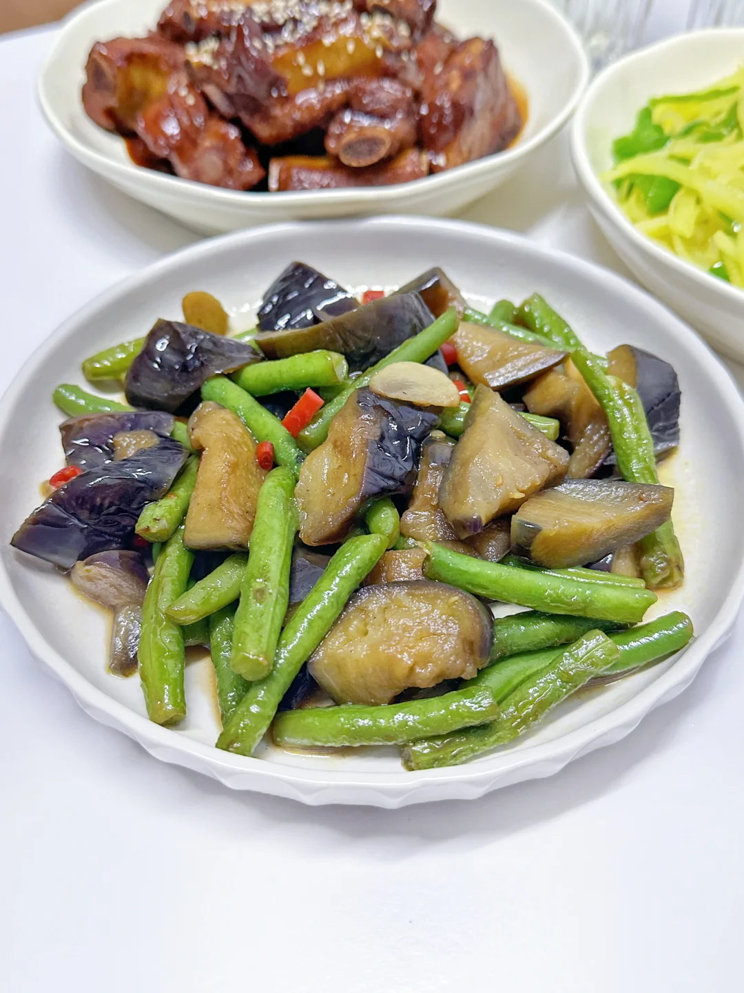 红烧排骨 茄子豆角 青椒土豆丝🌈