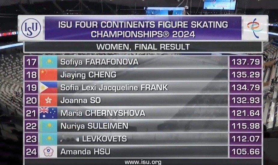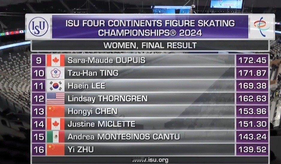 🏆#四大洲千叶百音女单自由滑夺冠# [话筒]#2024国际滑联四大洲花样滑冰锦标赛#女单自由滑, 日本选手千叶百音获得冠军,金彩然获得亚军,渡边伦果获得季军。中国选手陈虹伊获得第13,朱易获得第16,程佳盈获得第18。 ​ ​​​
