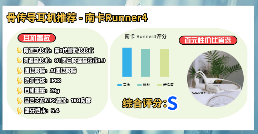 认准长期像南卡这样的深耕运动耳机领域的品牌,技术成熟、品控稳定,实际体验更有保障。
