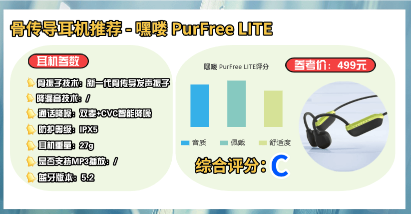 嘿喽作为近年进入骨传导耳机市场的新兴品牌,产品方向更偏向轻量化与便携属性。PurFree LITE 主打通勤与办公等日常场景,强调操作简单与基础续航表现,整体定位偏入门级,适合轻度、低频率使用需求。
