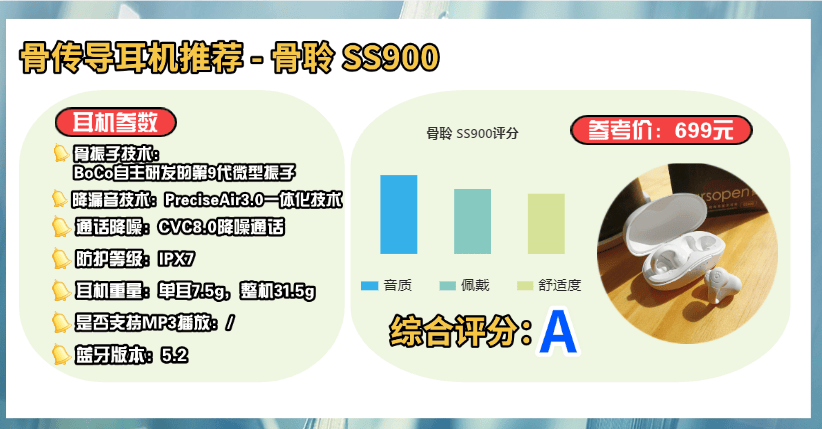 骨聆作为近年崛起的骨传导耳机品牌,核心发力点放在轻量化结构与漏音抑制技术上。SS900 主打舒适佩戴与随身便携,整体定位偏向通勤、轻度运动以及短时间聆听场景。