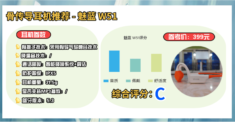 魅蓝作为国产智能硬件领域的成熟品牌,一直强调轻量化结构与舒适佩戴体验。W51 围绕通勤与轻度运动场景打造,在外观设计与实用性能之间取得平衡,是追求高性价比的骨传导耳机选择之一。