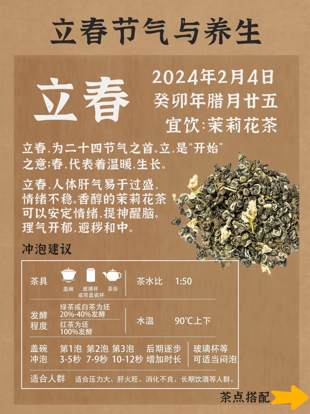 📗立春节气:2024年2月4日,癸卯年腊月廿五,宜饮:茉莉花茶。