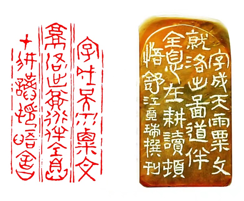江竟瑞篆刻作品《字成天雨粟 文就洛出图 道伴全息在 耕读顿悟舒》