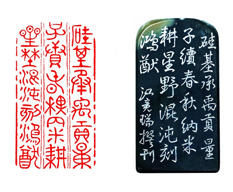 江竟瑞篆刻作品《硅基承禹贡 量子续春秋 纳米耕星野 混沌刻鸿猷》