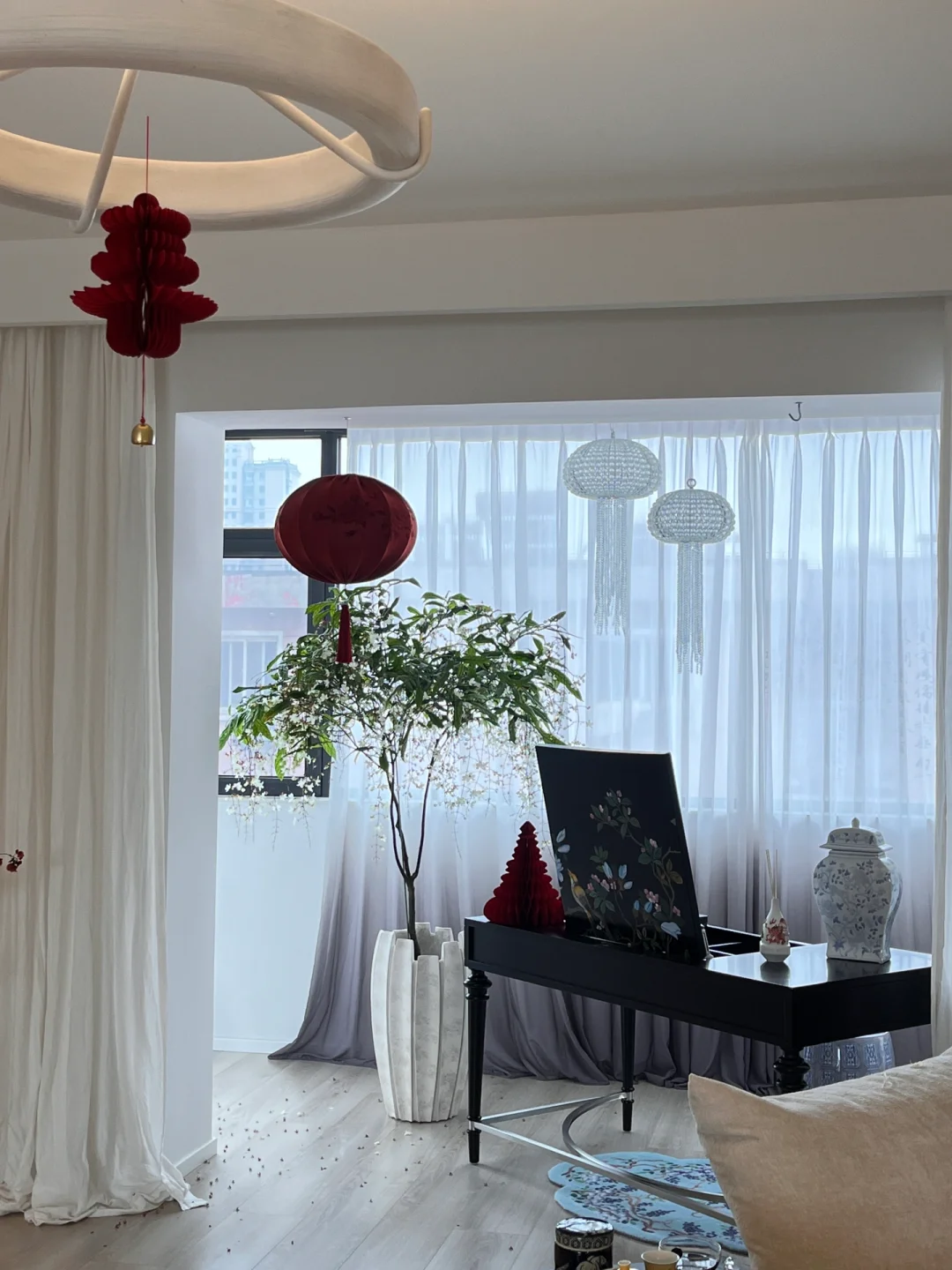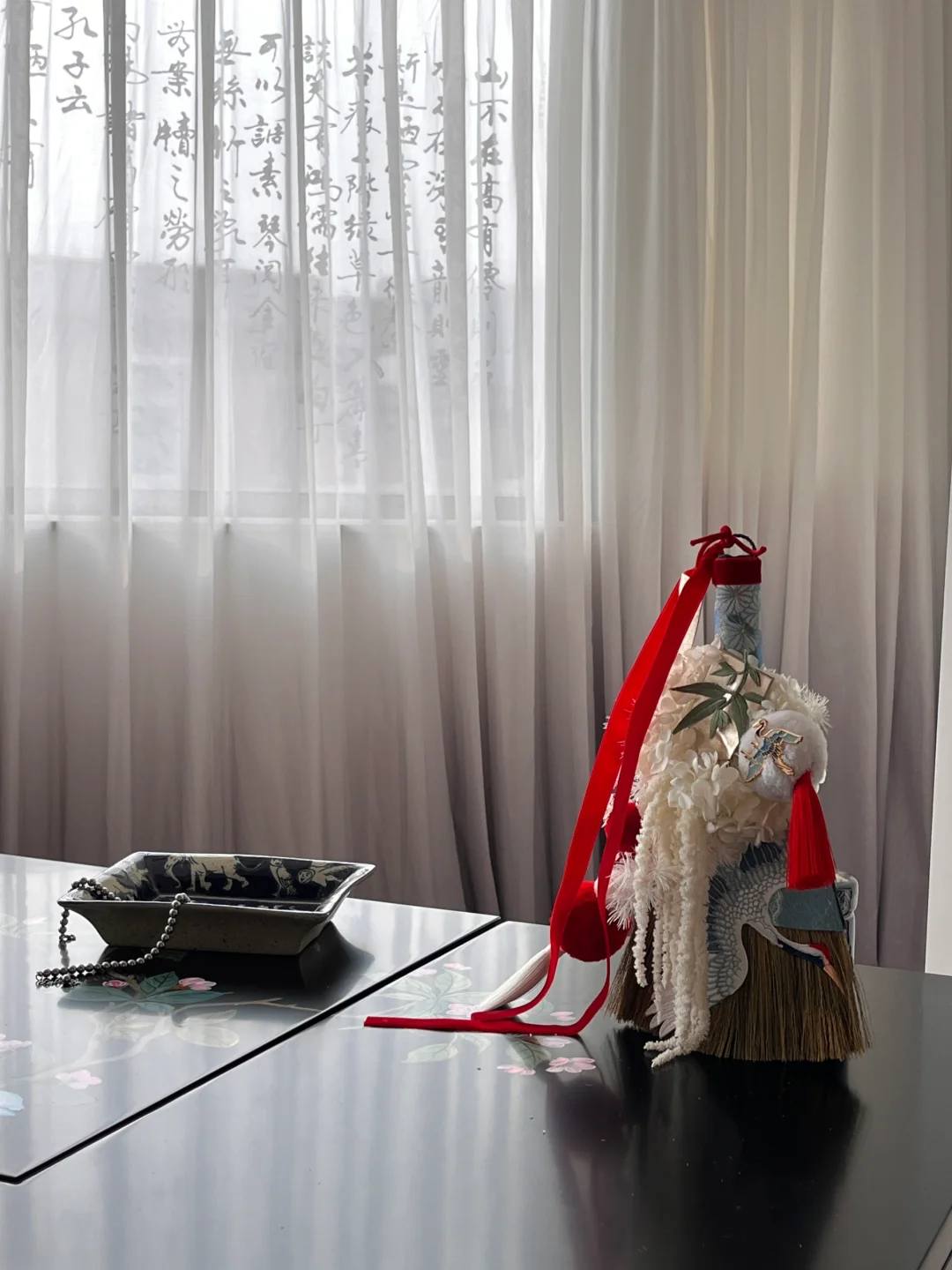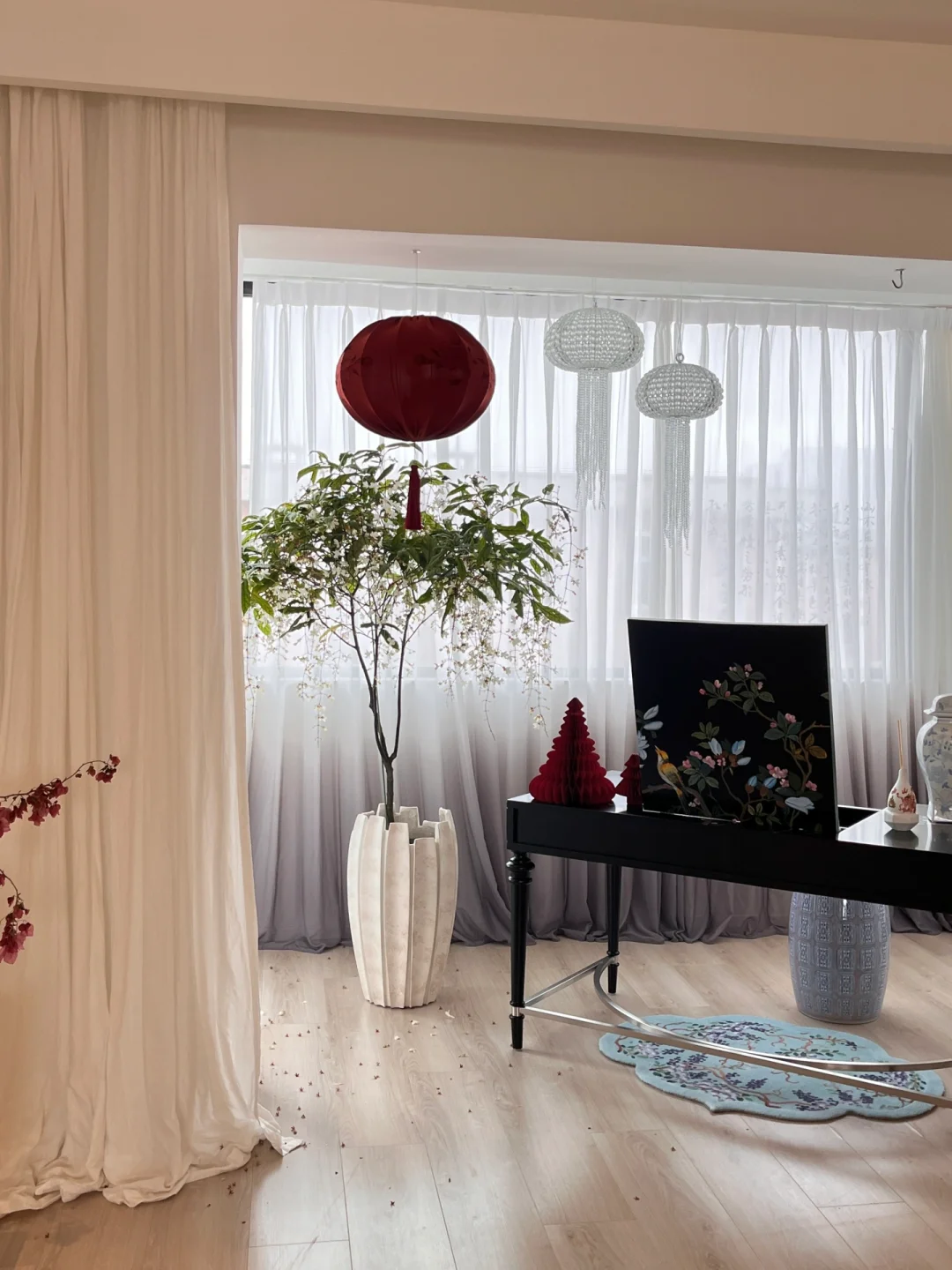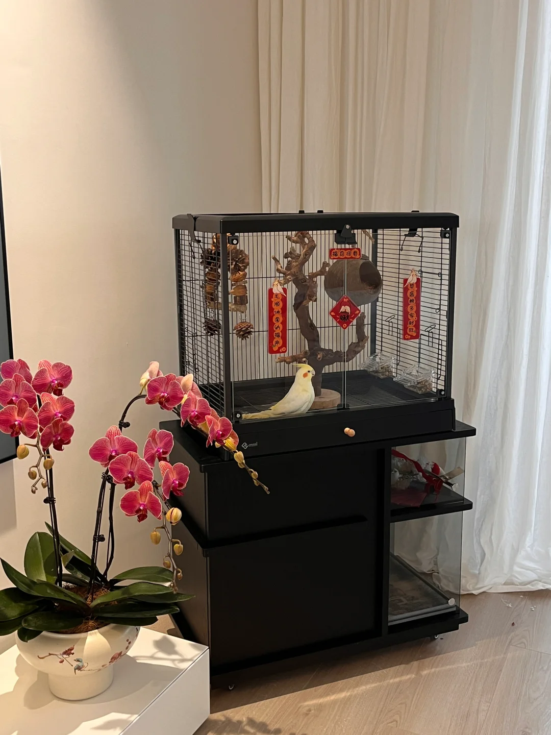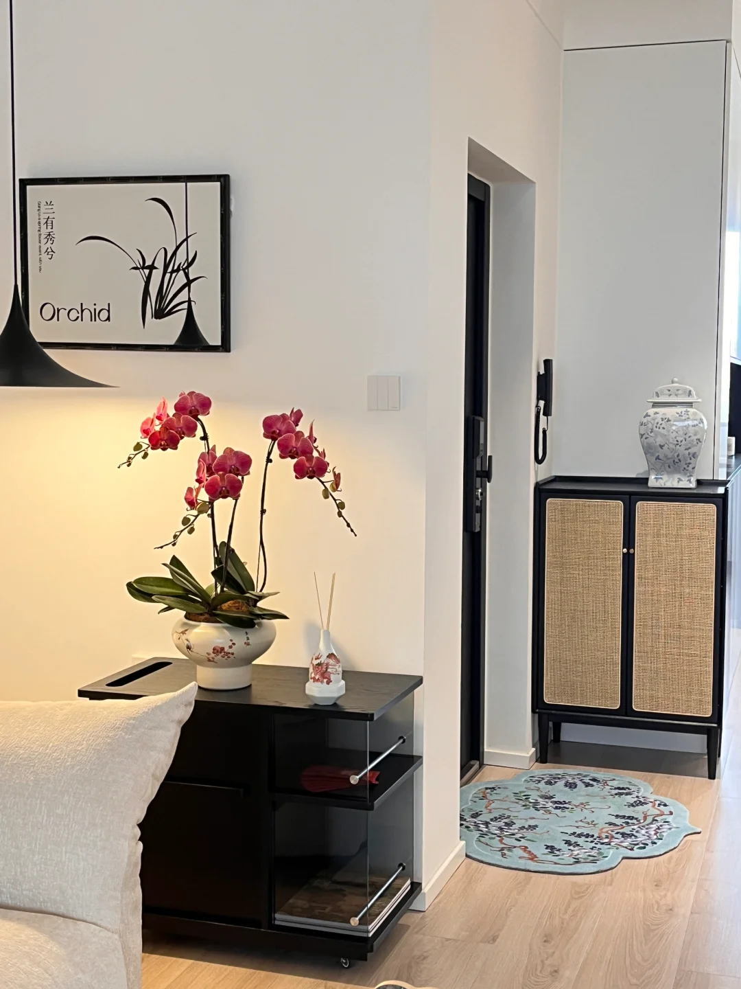 他就像仙女一样在客厅,搭配我的手绘花鸟书桌和花鸟莺燕地毯,整个客厅灵动又仙气。