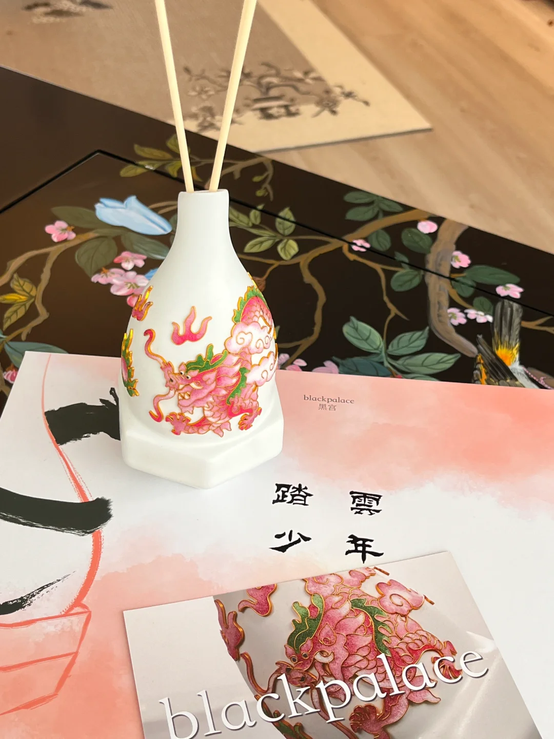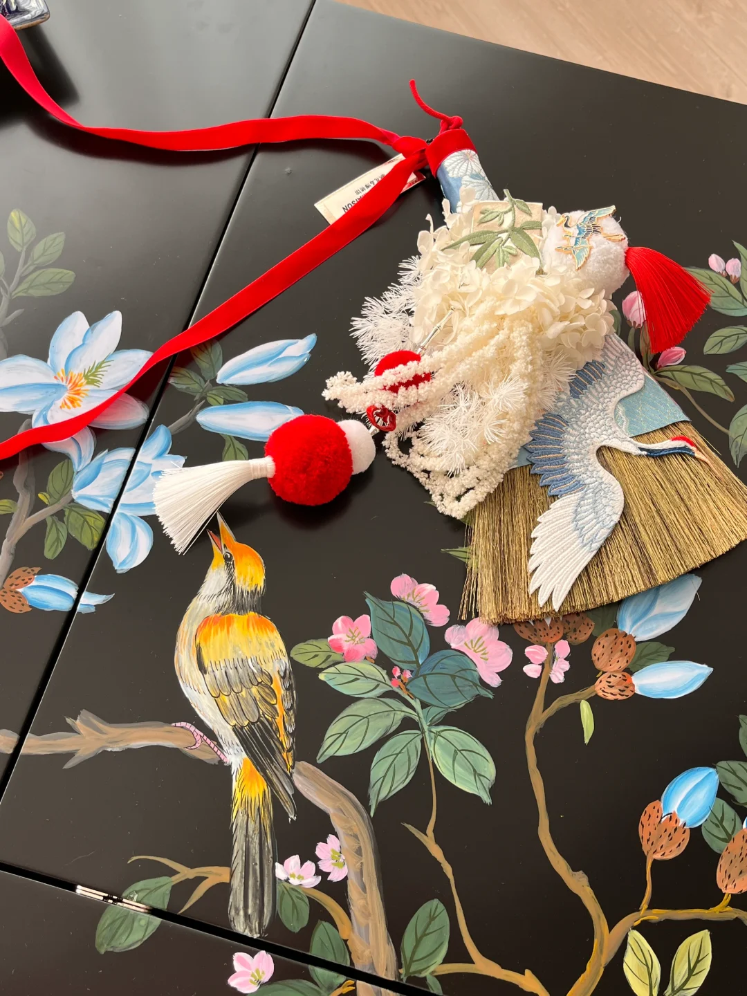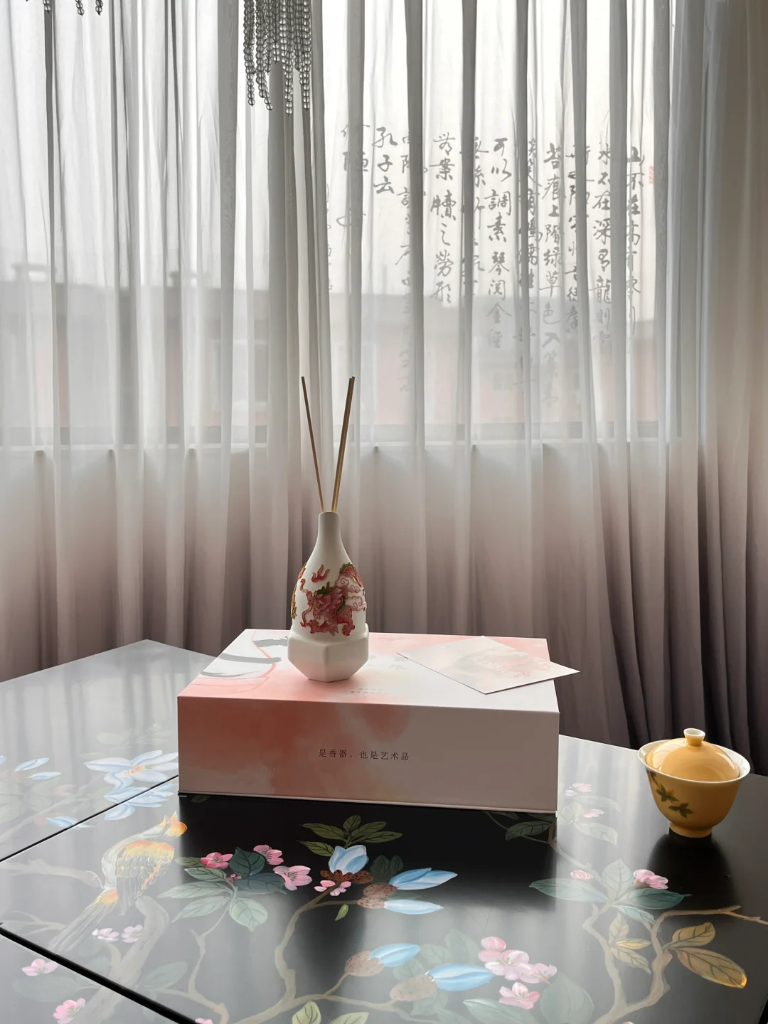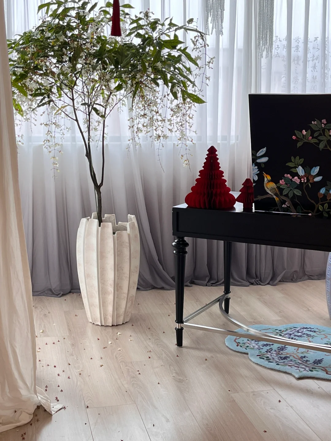 他就像仙女一样在客厅,搭配我的手绘花鸟书桌和花鸟莺燕地毯,整个客厅灵动又仙气。